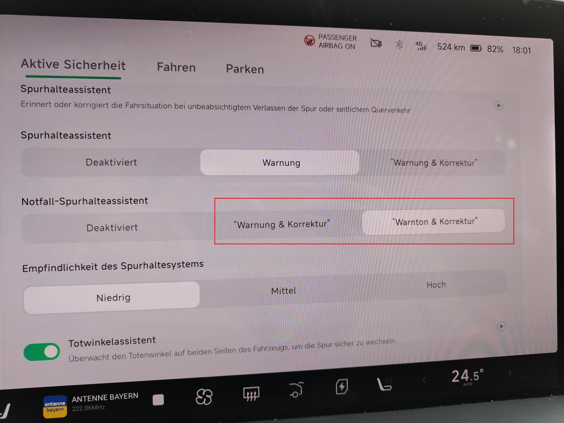- Spurhalte-Assistent vibriert und klingelt, aber er fährt einfach über die Mittellinie drüber. Man muss nicht mehr “kämpfen” aber kommt auf die Gegenfahrbahn. Weiß nicht, was ich besser finde.