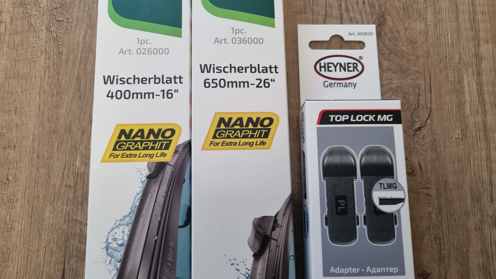 Diese hier von Heyner sind mit Graphit beschichtet. Läuft sehr ruhig, Wischergebniss sehr gut. Die Balken sind gut angepasst von der Biegung, keine “hohlen Stellen”. Lieferung in 2 Tagen.