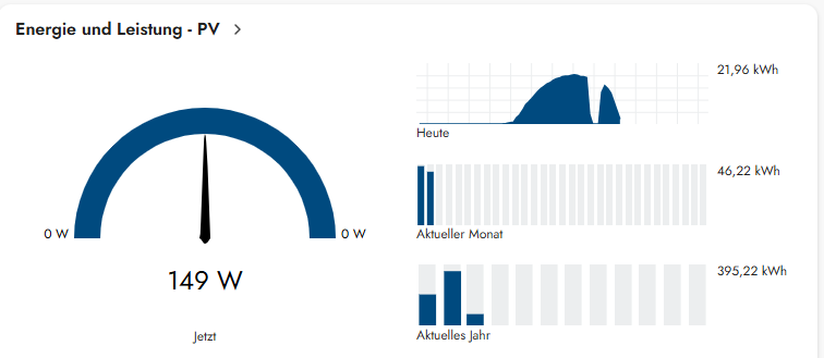 wunderschöne Übersicht mit mySolarEdge und Werte von denen ich mit meinen 6 kWp nur träumen kann, wobei es richtig “aktuelle Sonnenleistung” heißen müsste. Auf Englisch steht da m. E. auch “Solar Power Now” ![]()