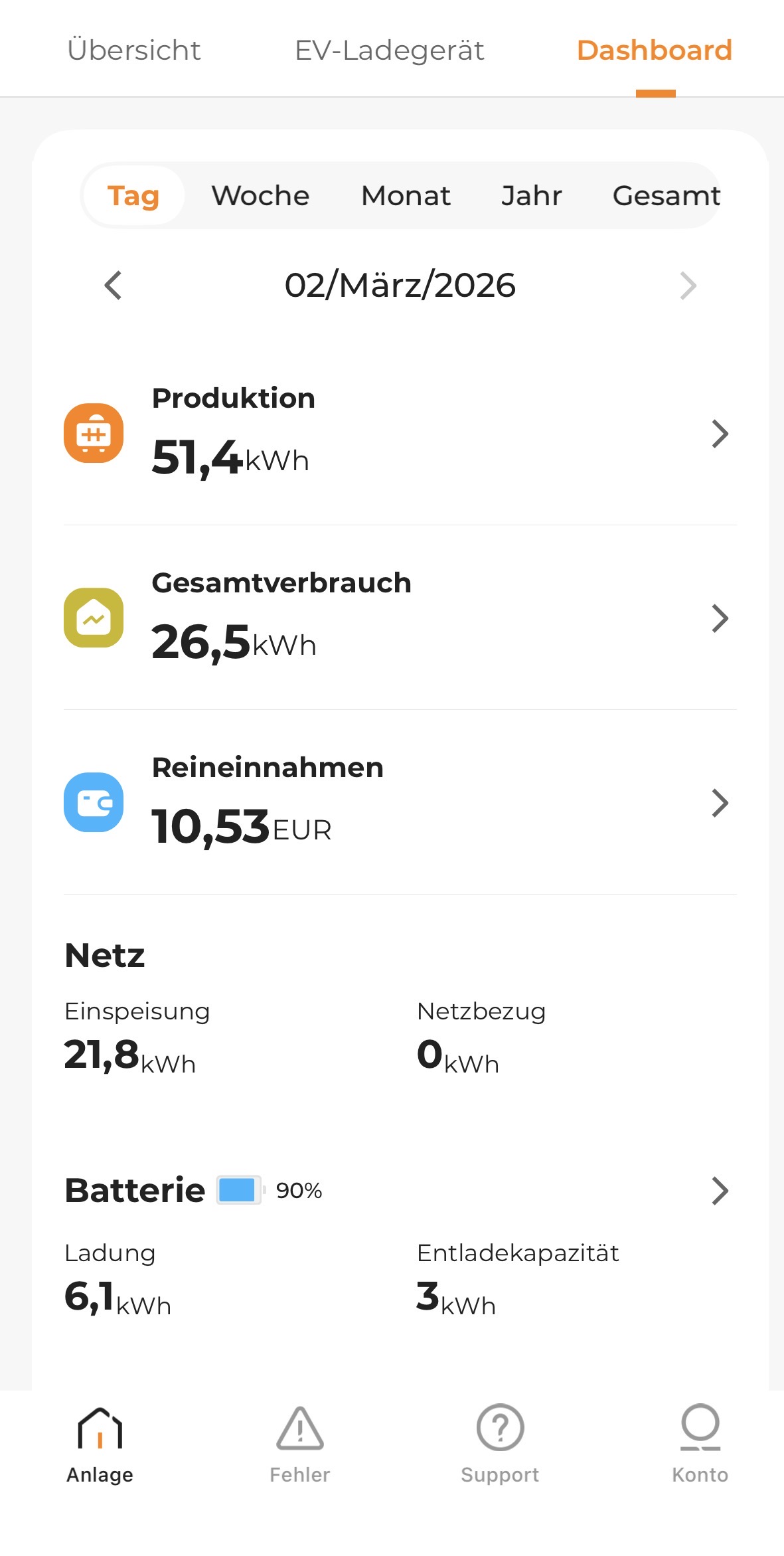 Leider spinnt der Huawei Zähler und berechnet pro Tag circa 2,5 kWh zu wenig. Hab’s denen schon zehnmal gesagt, hilft aber nix![]()