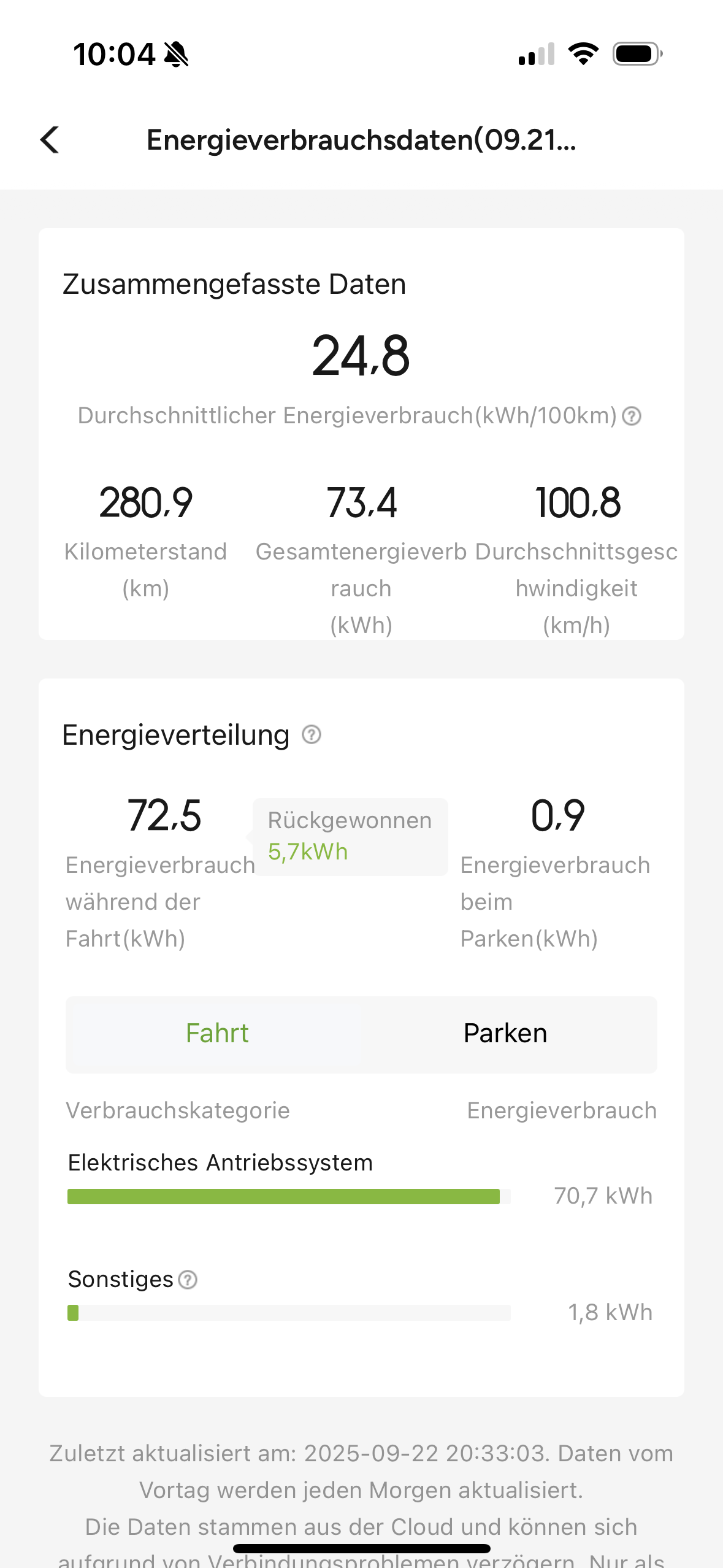 Das Ergebnis seht selbst. Was mache ich falsch, dass ich solche Verbräuche habe. Deckt sich nicht unbedingt mit den Erfahrungen @Generation-E , oder doch?