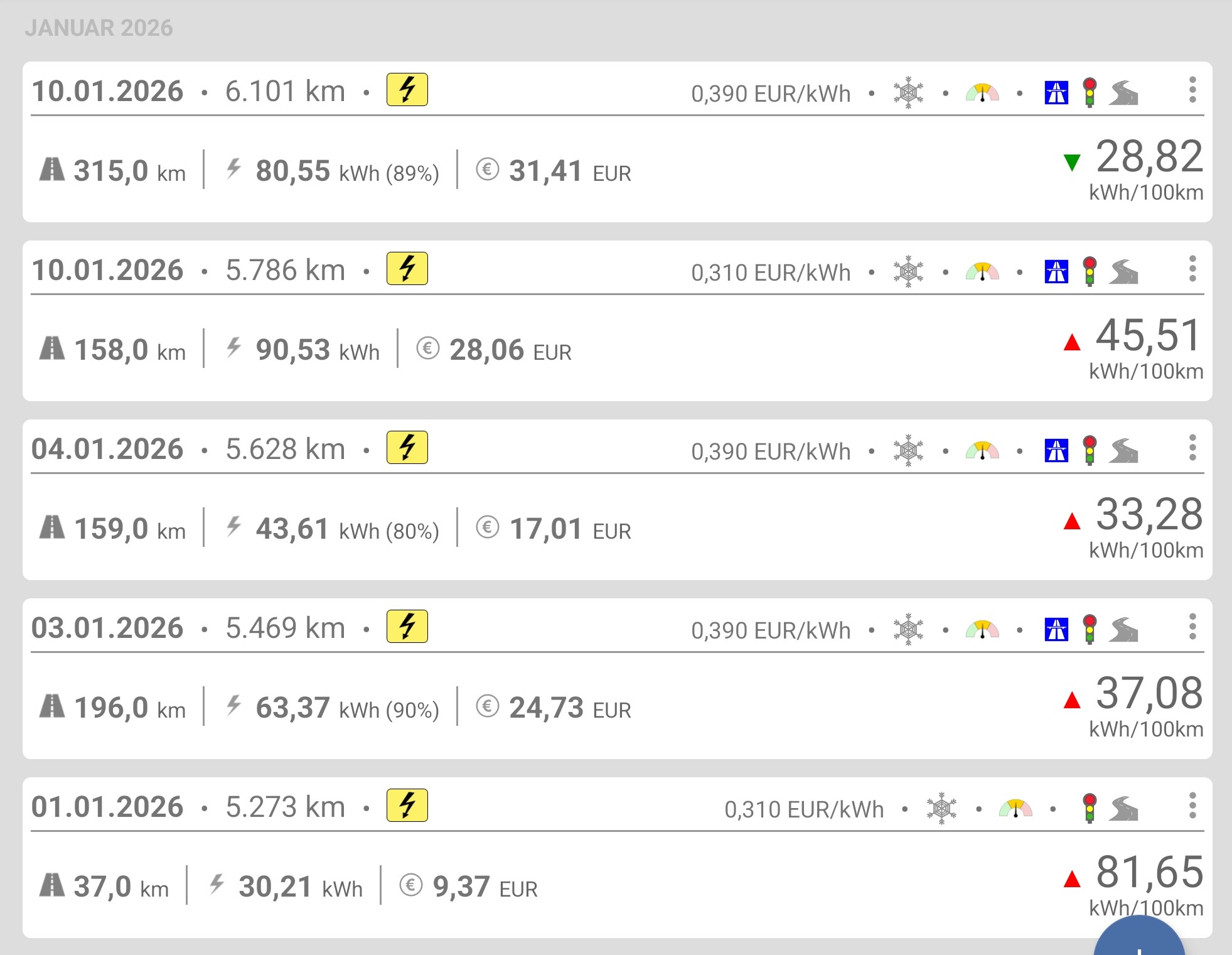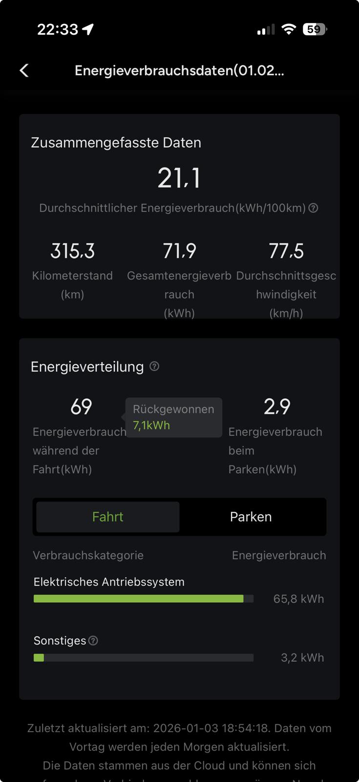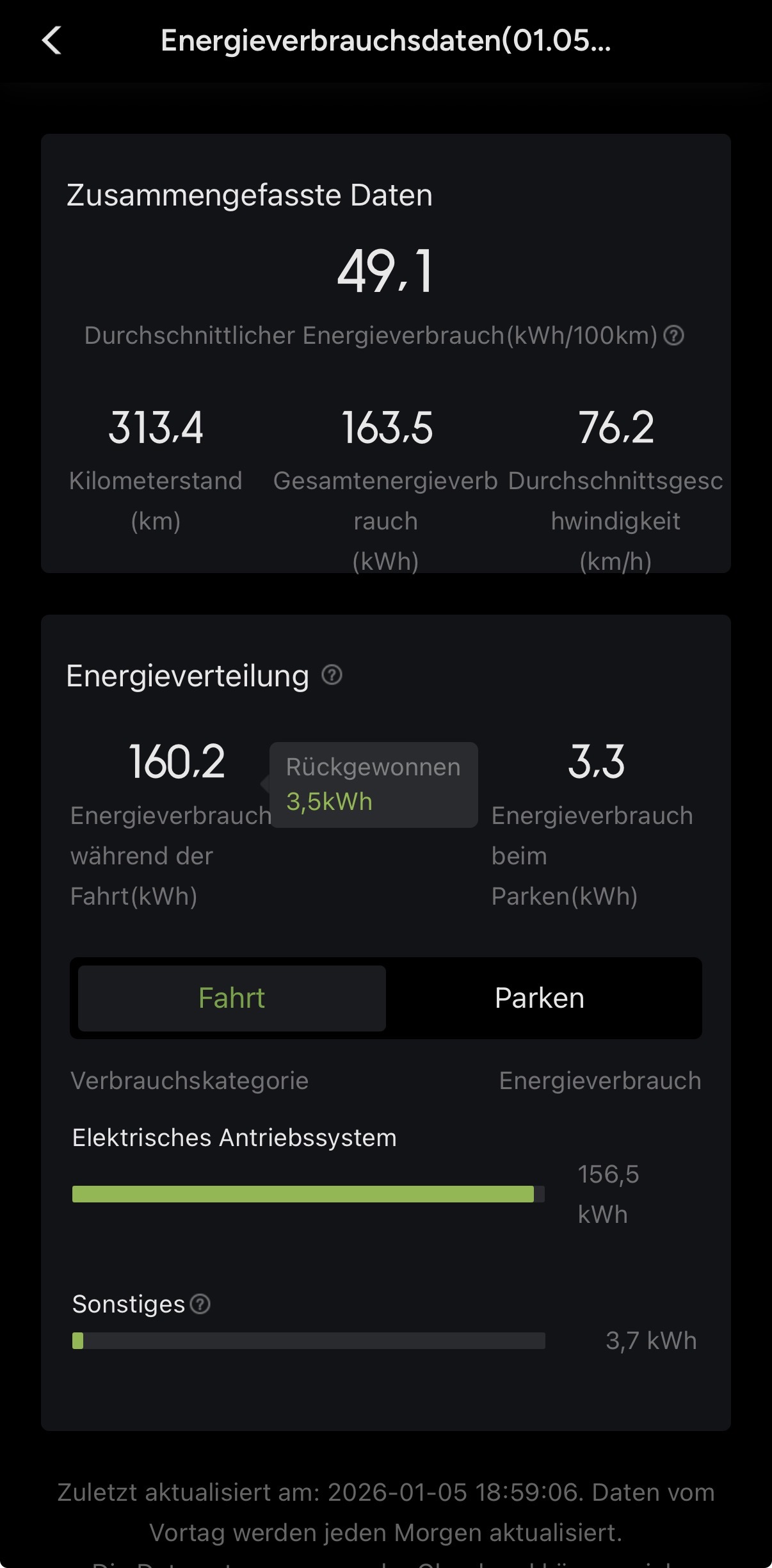 Sehe ich ähnlich, mich interessiert es einfach, was der „ganze Wagen“ am Ende konsumiert und was es mich kostet - einfach weil mir Statistiken gefallen.
