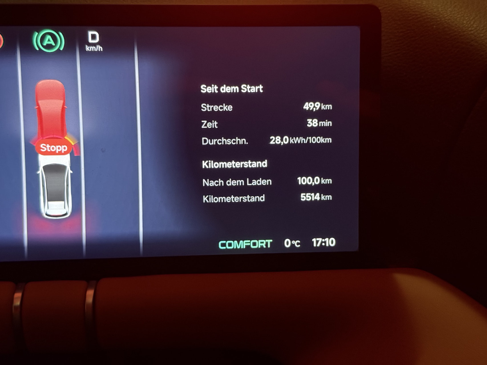 Wir sind knapp 50 km hintereinander (Model 3 vorne) gefahren, Strecke* & Geschwindigkeit somit absolut identisch. Lustigeweise hat der Tesla 51,2 km Strecke gemessen, der G9 nur 49,9 km. ![]()