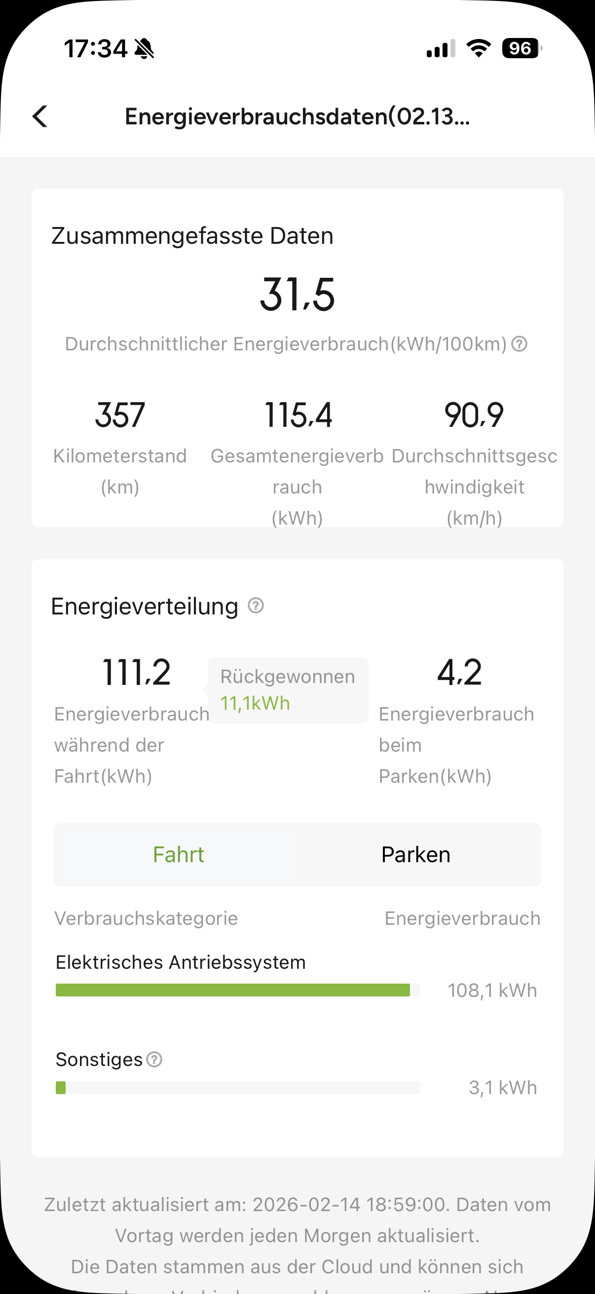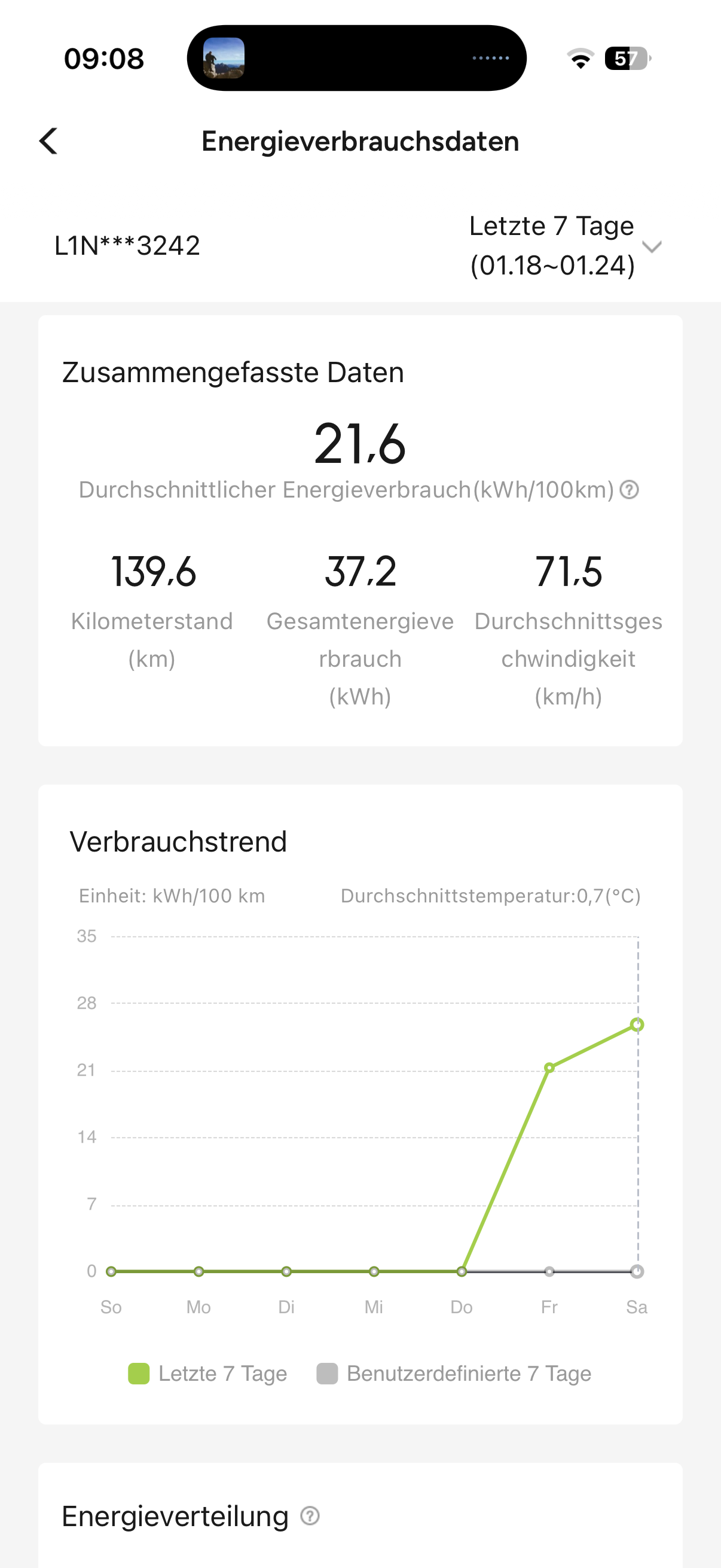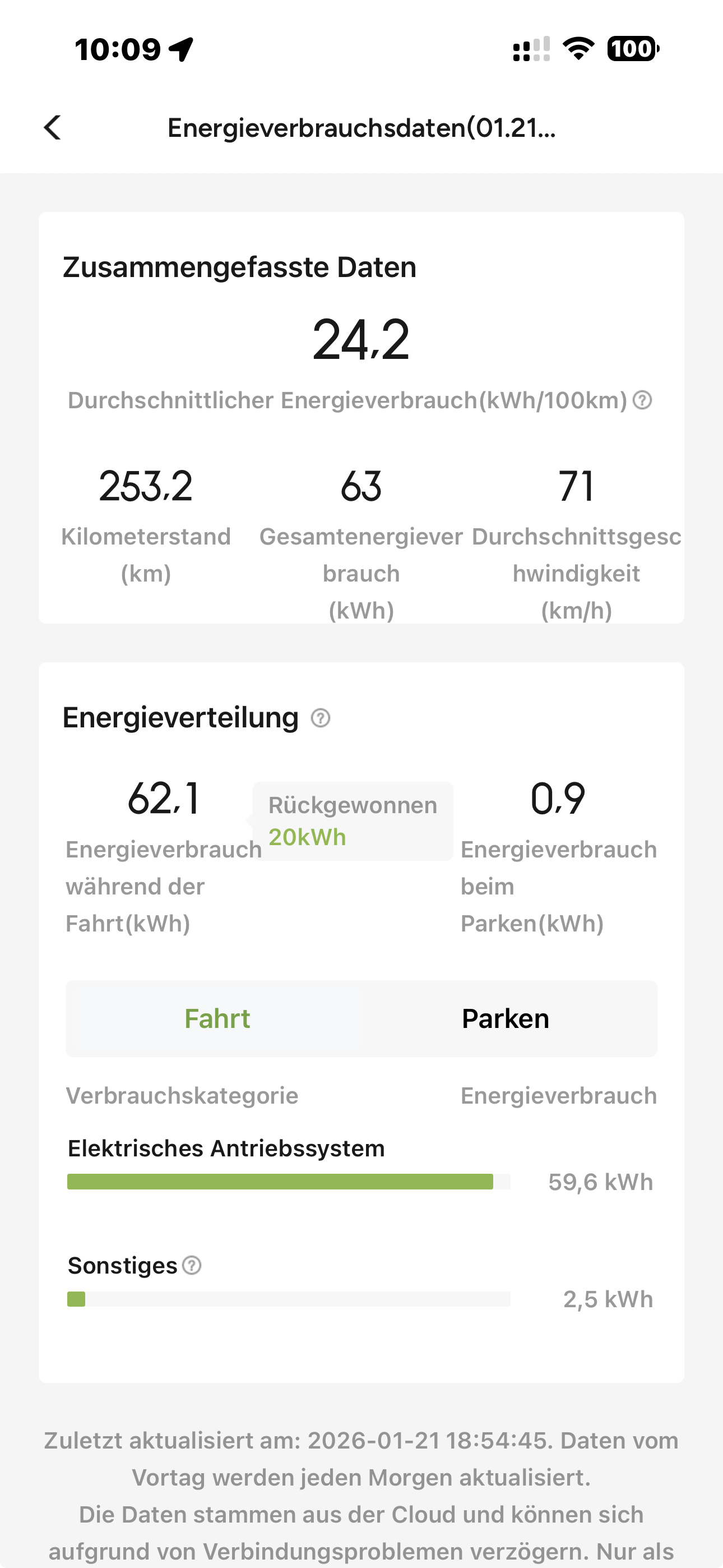 Ja wahrscheinlich nen schweren rechten Fuß so wie ich. Ich bin auch eher bei Deinen Werten und bin dann in der Stadt mit 20 kWh/100 km unterwegs…