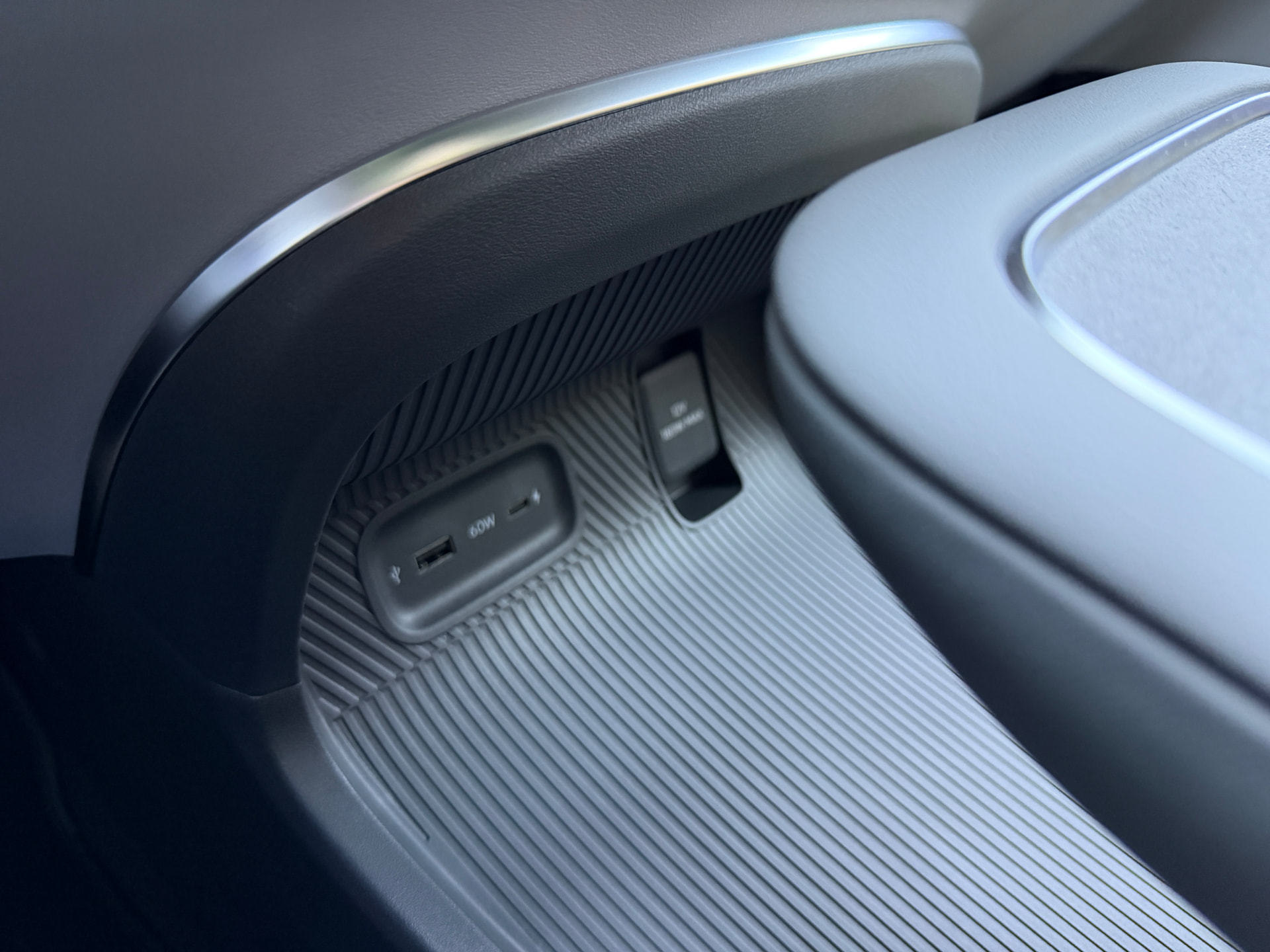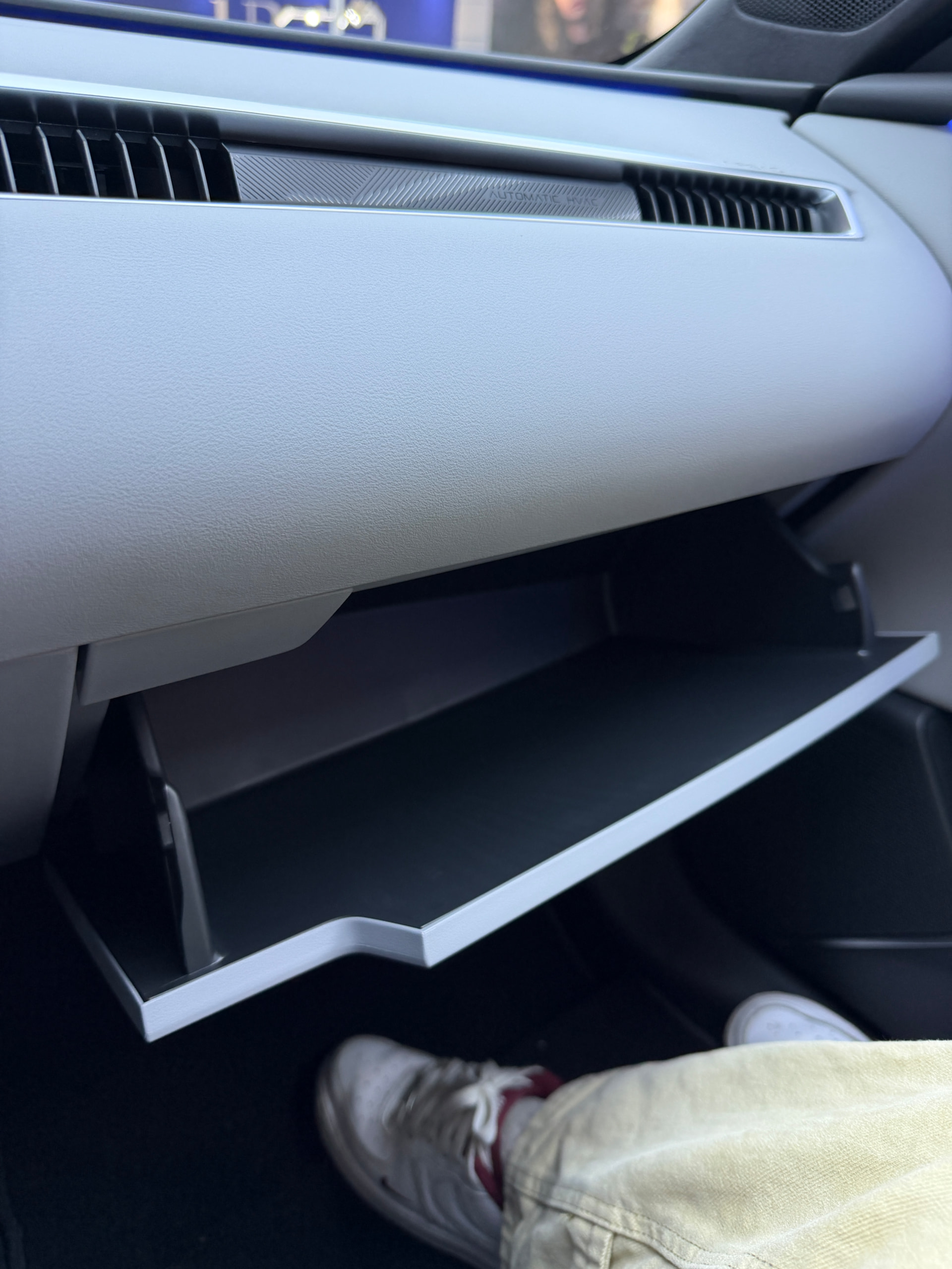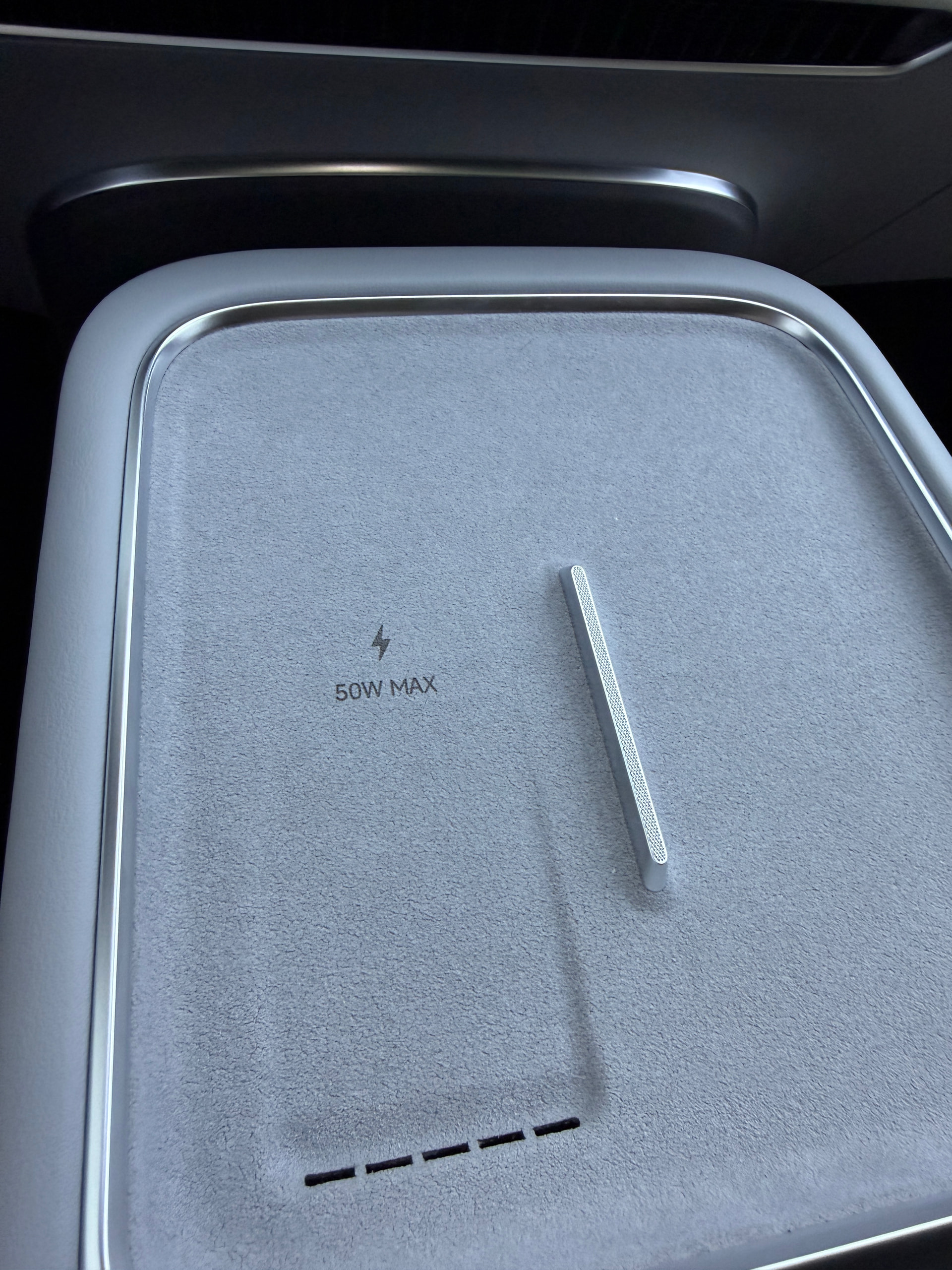 Der Wireless Charger sitzt auf der Fahrerseite und schafft bis zu 50W Peak, wenn man denn ein Gerät hat, das die Energie ohne Kabel schluckt. Einen zweiten Ladeplatz auf der Beifahrerseite gibt es hier allerdings nicht. Das Handschuhfach öffnet man manuell per Klappe, während es bei den anderen Modellen elektrisch geht, auch hier ein kleines Zugeständnis an die Positionierung.