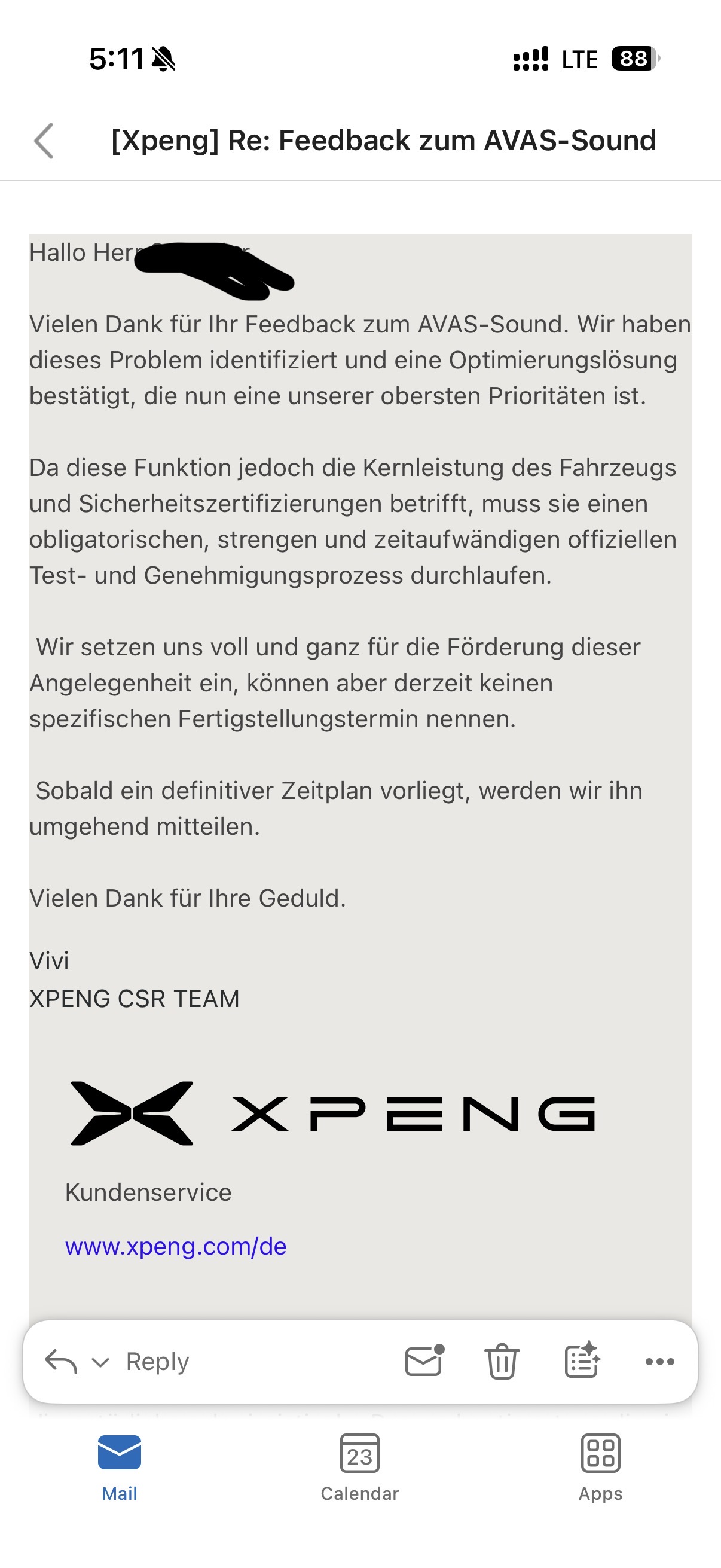 Leider enthielt das OTA Update noch keine Lösung für das AVAS Sound Problem.