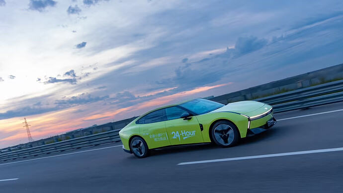 Der neue P7 hat beim 24h-Dauertest den vorherigen Rekordhalter geschlagen. Leider steht nichts zum Verbrauch im Artikel, vielleicht kommt das noch in einer Pressemitteilung. Aber 3.961 km in 24 h inklusive Ladestops bedeuten 165 km/h im Durchschnitt. Also ich würde das reisetauglich nennen. Der Mercedes CLA hatte letztes Jahr 3.717 km geschafft.