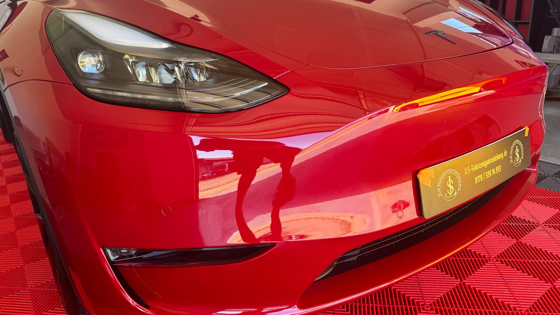 Ich hatte bei meinem Tesla, genau zu dieser Zeit, massive Probleme bei der Eintragung der Startech-Frontschürze an der ich, bedingt durch ein kurzes, kleines Kennzeichen, die originale Platte nicht fahren konnte / wollte. Dort gab es, ähnlich wie beim Tesla Model Y vorne eine Halteplatte dazu die einen gewissen Winkel der Front ausgleicht. Ich habe das Kennzeichen damals mit Klett montiert und da aber im Gutachten der Frontschürze dies nicht aufgeführt war, hatte ich massive Probleme bei der Eintragung. Ich musste sehr lange mit dem Prüfer streiten bis ich die Front dann als Einzelabnahme mit der Kletthalterung eingetragen bekam.