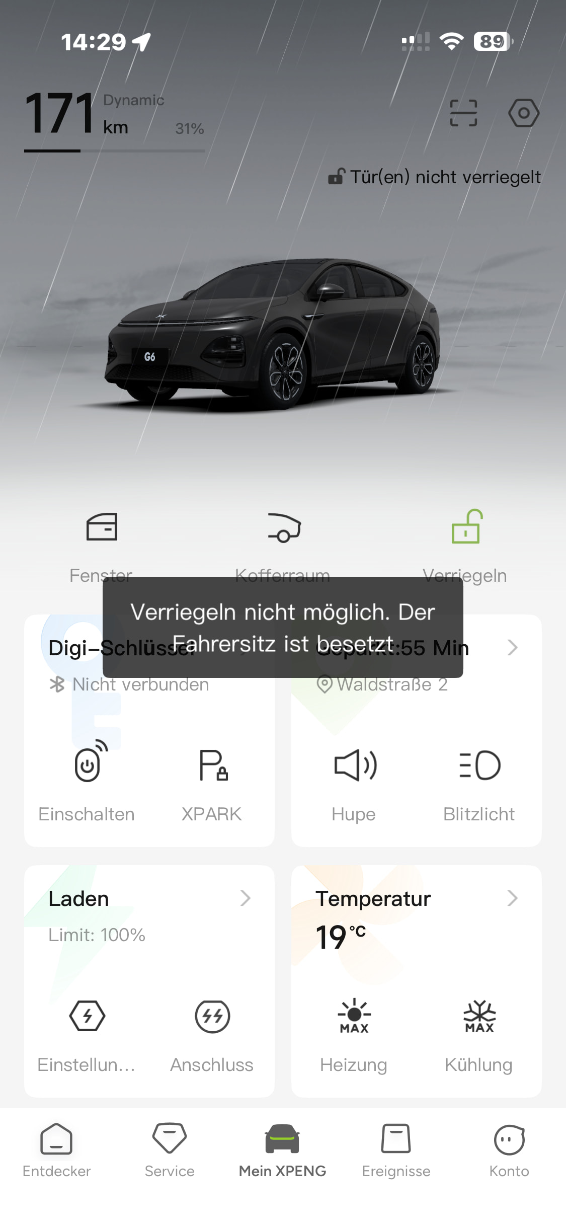 Aber was jetzt viel schlimmer ist, das ich mein Auto nicht mehr abschließen kann. Es kommt die Meldung „Verriegeln nicht möglich. Der Fahrersitz ist belegt.“Das hatte ich jetzt schon zweimal. Zum Glück immer Zuhause. Ich schalte dann immer alles einzeln aus, wie Licht, Klima, usw. Aber die Displays bleiben ja. Ein Lenkrad Reset und klopfen auf den Fahrersitz bringt leider nichts. Irgendwann klappt es dann wieder. Ich habe immer IPhone mit Diggischlüssen und Knochen dabei. Kann damit eigentlich nichts zu tun haben denn in 98% des Abschliesends klappt es ja. Mhmm, ist immer Zuhause wo er auch im WLAN ist. Hat das schon einer gehabt?