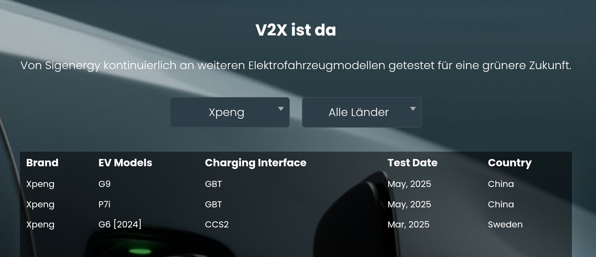 Aber ich sehe das so. Sigenergy unterstützt es, sie haben es erfolgreich mit einem XPENG in Europa getestet. Also Funktionalität von beiden Seiten scheint gegeben zu sein. Jetzt brauch ich nur noch die deutsche Regulierung dazu. Aber rein technisch würde ich aus den Daten herauslesen, dass die Kombi generell wohl bereit scheint und somit die Frage, ob der XPENG das generell kann, positiv beantwortet werden kann.