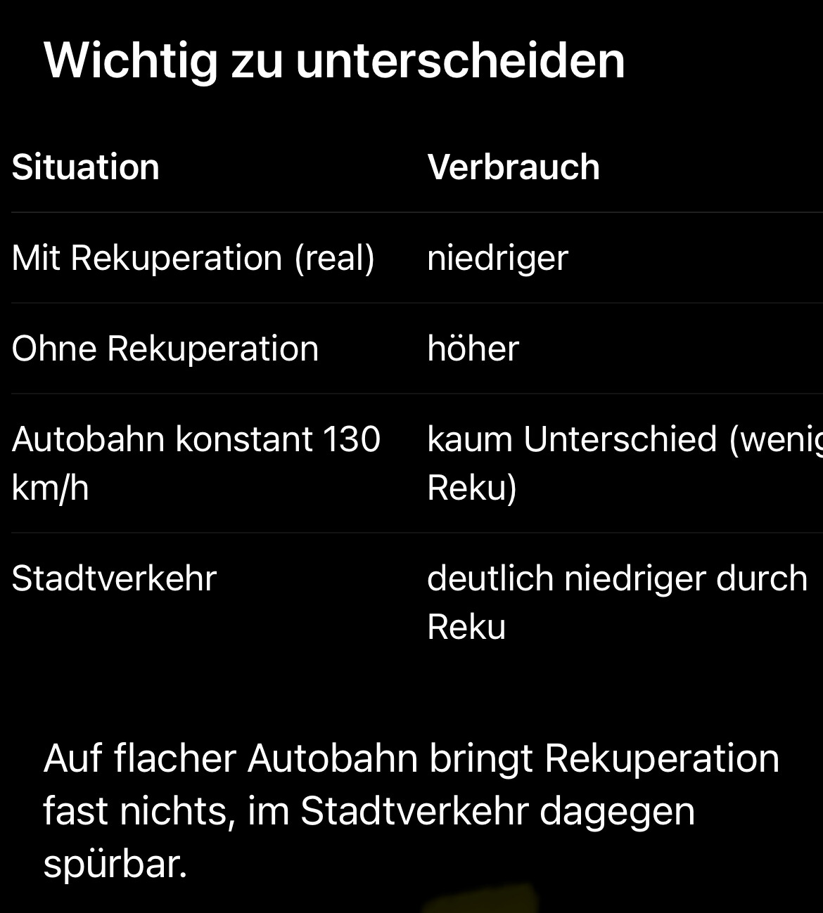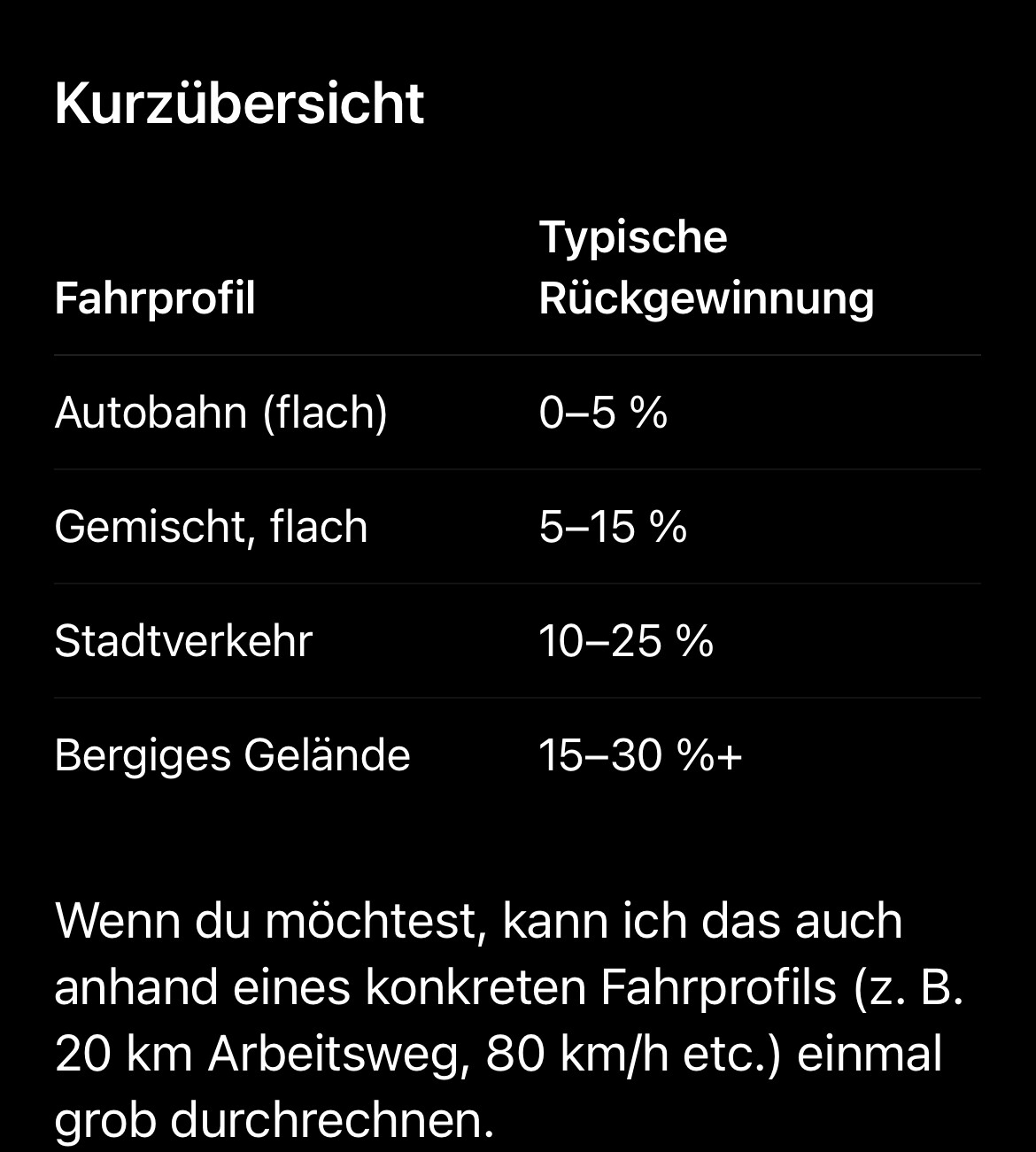 Lies nochmal, was ich schrieb. Was da im Bild steht, ist unbrauchbar, weil er die Reku auf Bremse nicht checkt. AI ist hier nicht hilfreich. Wir sind nicht viel auseinander. Aber man muss den technischen Bremse/Reku-Hintergrund einbeziehen. Der ist nur bei Tesla völlig anders. OPD (außer bei Tesla!) ist ineffizienter als die Kombi aus Segeln und Reku auf Bremse (ohne, dass die Scheibenbremse zugreift, was aber bei Tesla technisch nicht umgesetzt wird!). Beim kleinsten Lupfen des Pedals wird bei OPD immer potentielle Energie vernichtet.