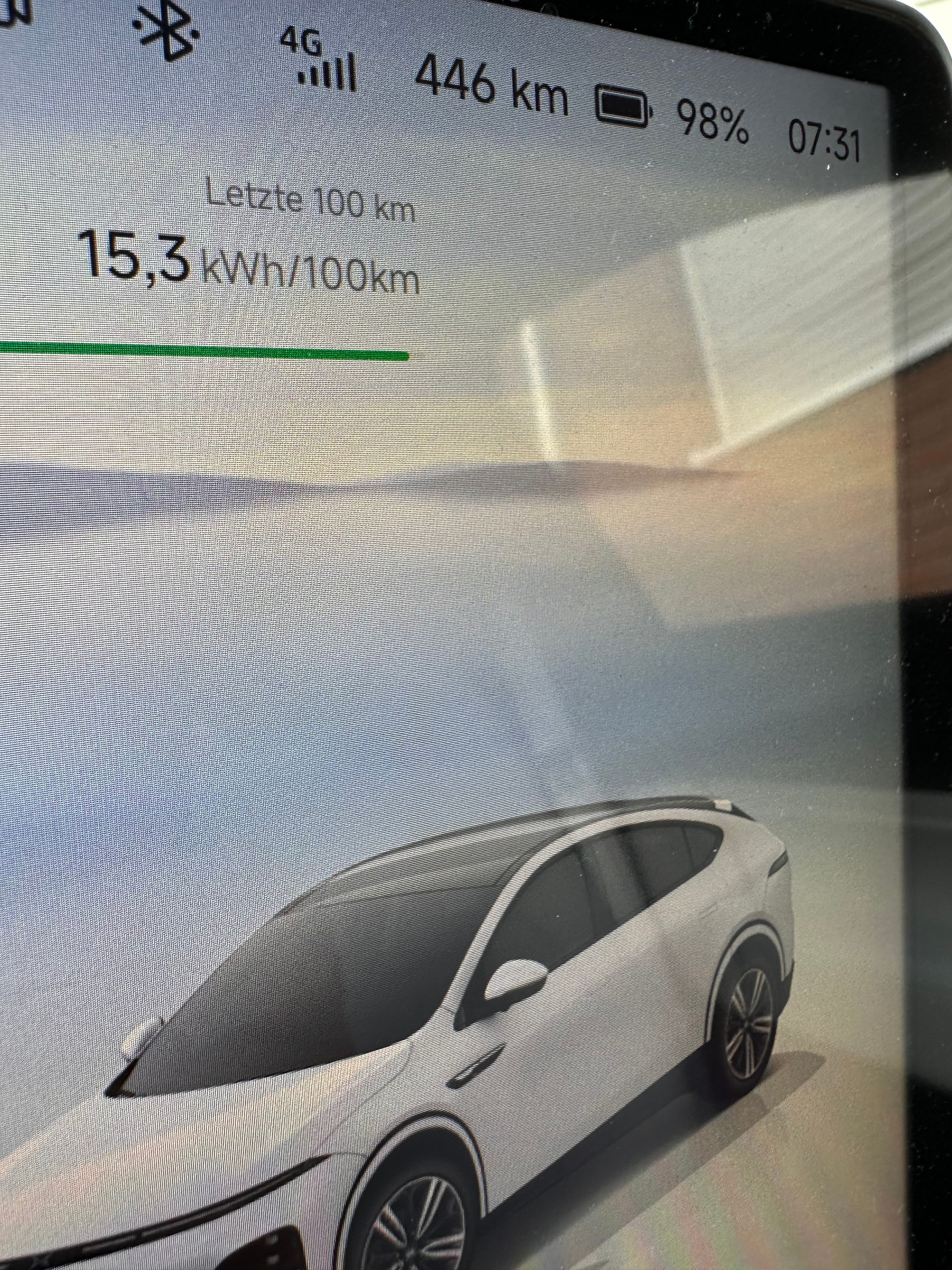 Stimmt, die Verbrauchsanzeige scheint richtig komisch zu funktionieren (Facelift LR). Ich bin gestern gut 20 km gefahren (Stadtverkehr, ca. 10 Ampel, Durchschnitt 25km/h), 2 Grad draußen, Heizung 23 Grad, Lenkrad- & Sitzheizung Fahrer. Ich habe ca. 25 kWh/100 km erwartet (etwas mehr als Model 3 LR / i4, die haben auf der Strecke ca. 22-24 verbraucht), laut Anzeige waren es aber nur 18,5 kWh/100 km. Der Wert ist wesentlich zu niedrig.