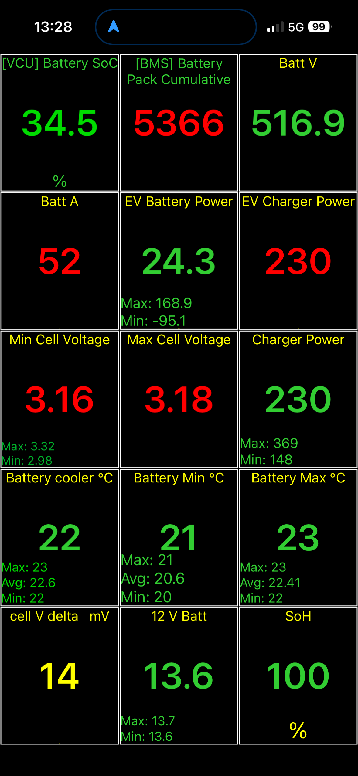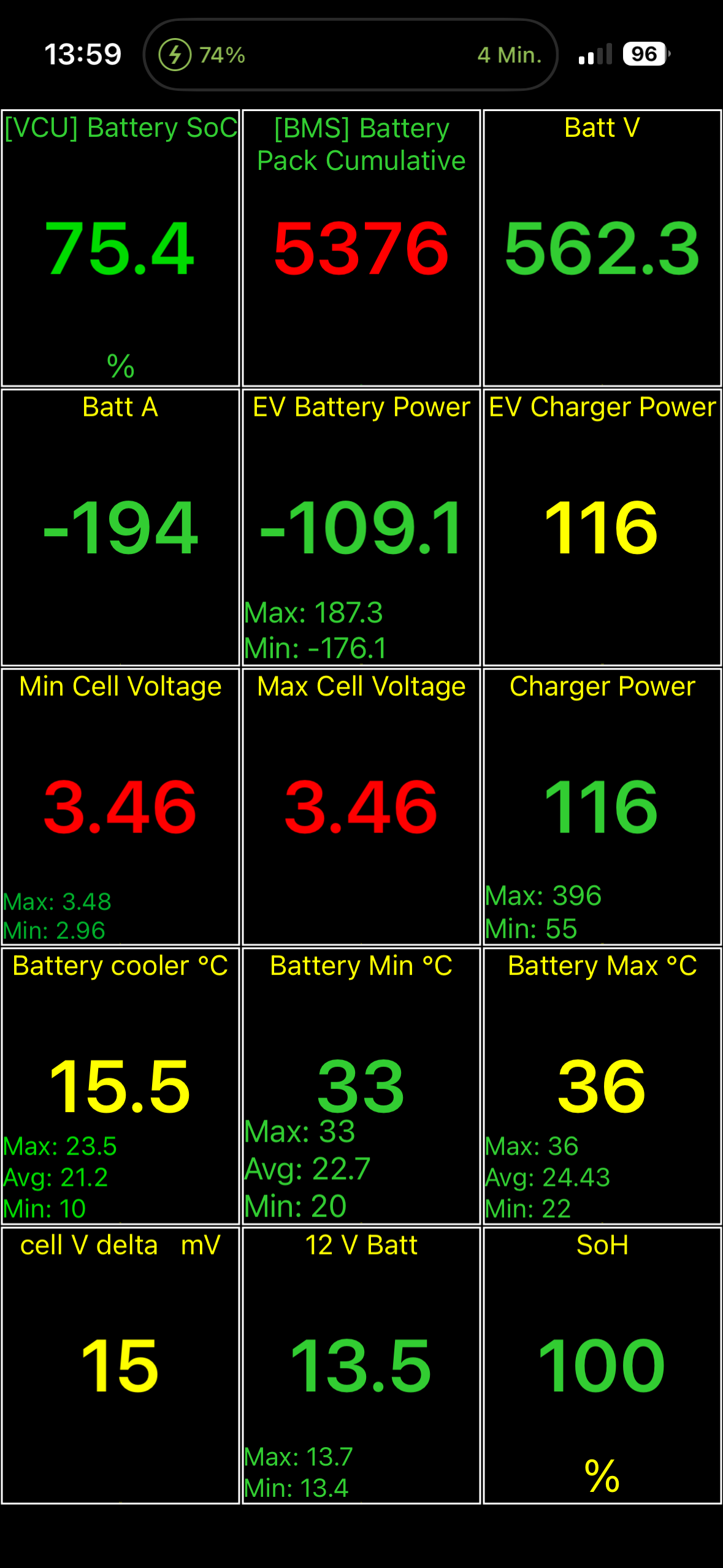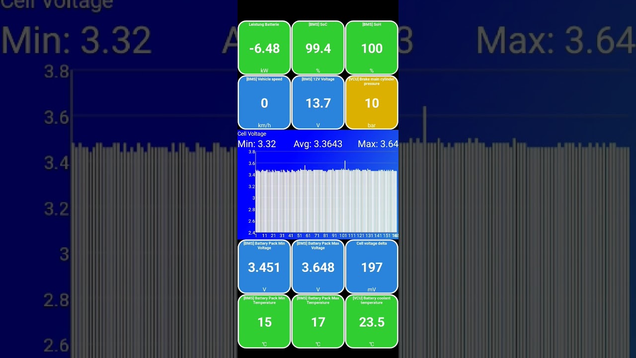 Was soll denn der SR im Peak schaffen? Und wie realistisch ist das an unseren Ladesäulen? Die Spannung des Akkus liegt ja nochmal deutlich niedriger als beim LR, mit gerade mal 562 Volt bei 75%. Da braucht es schon 500A um 281 kW zu schaffen. Mit den ja wohl auch nicht ganz unüblichen 350A kommt man auf 197 kW. Und wenn das eine 200 kW Ladesäule mit 800V Technik ist, dann können da ja rein rechnerisch nur 200.000W/800V=250A maximal rauskommen. Macht mit der Zellspannung von ~560 Volt nur 140 kW. Da lagst du ja sogar drüber… von daher würde ich an der Säule gar nicht die 176 kW erwarten, da hat die Säule laut Anzeige ja 310A rausgehauen.