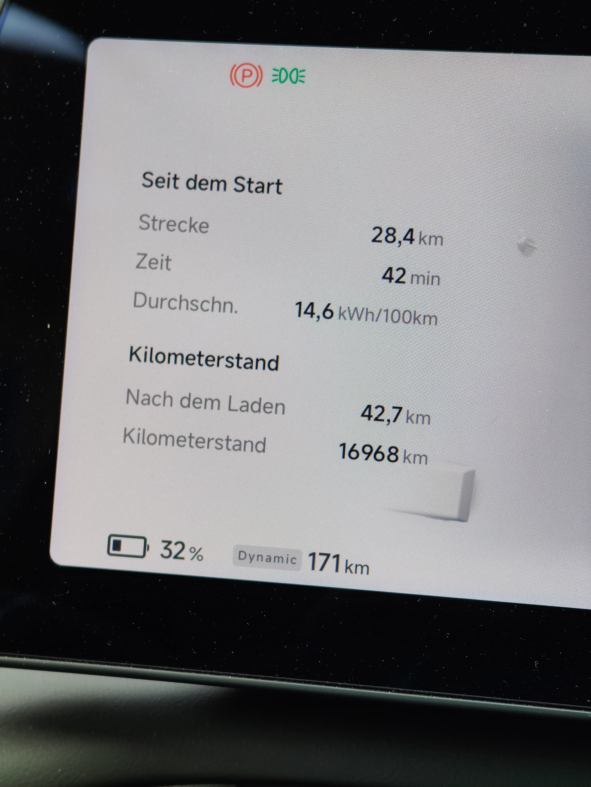 Ich hatte am Samstag für die Runde nach Fulda nen Durchschnittsverbrauch von 216Wh/km bei Geschwindigkeiten von 130-150 und der Gelegentlichen „Eskalation“ dazwischen. Das finde ich beeindruckend gut!