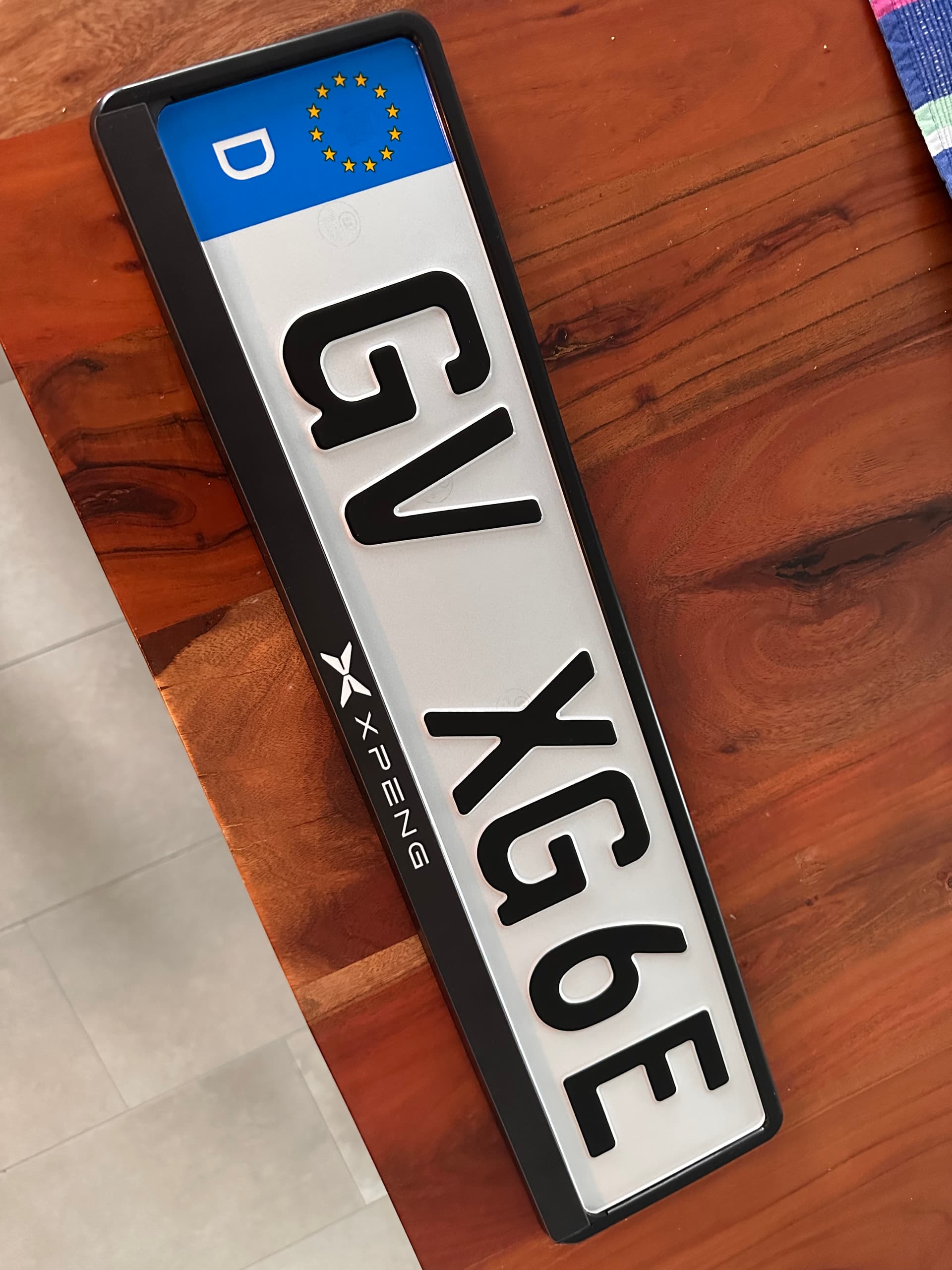 Ich habe mir ein gutes aufgelöstes Logo von XPENG gesucht und dann auf einer Homepage die Kennzeichen bedrucken, erstellt und bestellt.