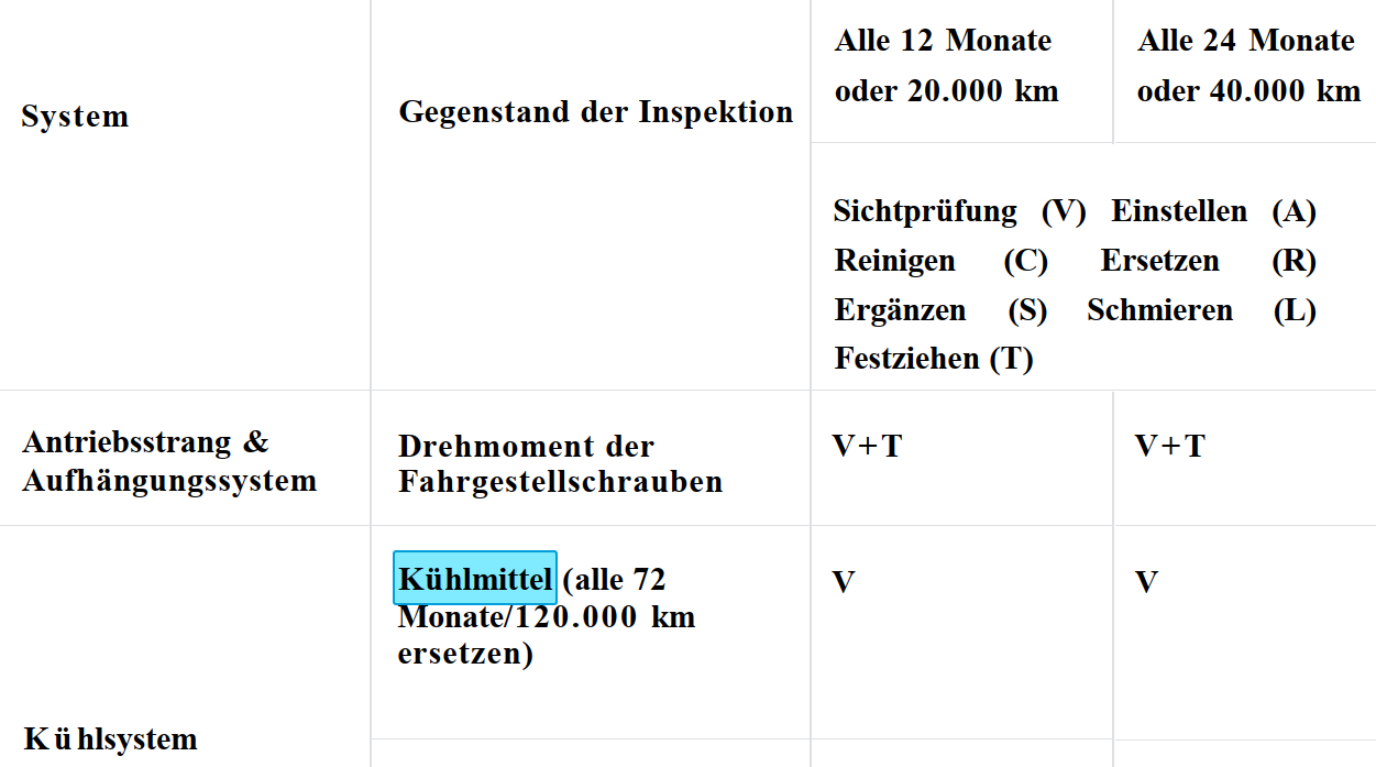 Dann auch später in der Tabelle aufgeführt. Nach meiner Einschätzung soll es alle 12 Monate/20.000 km einer Sichtprüfung unterworfen werden. Nach spätestens 72 Monaten/120.000 km erfolgt dann der Ersatz.