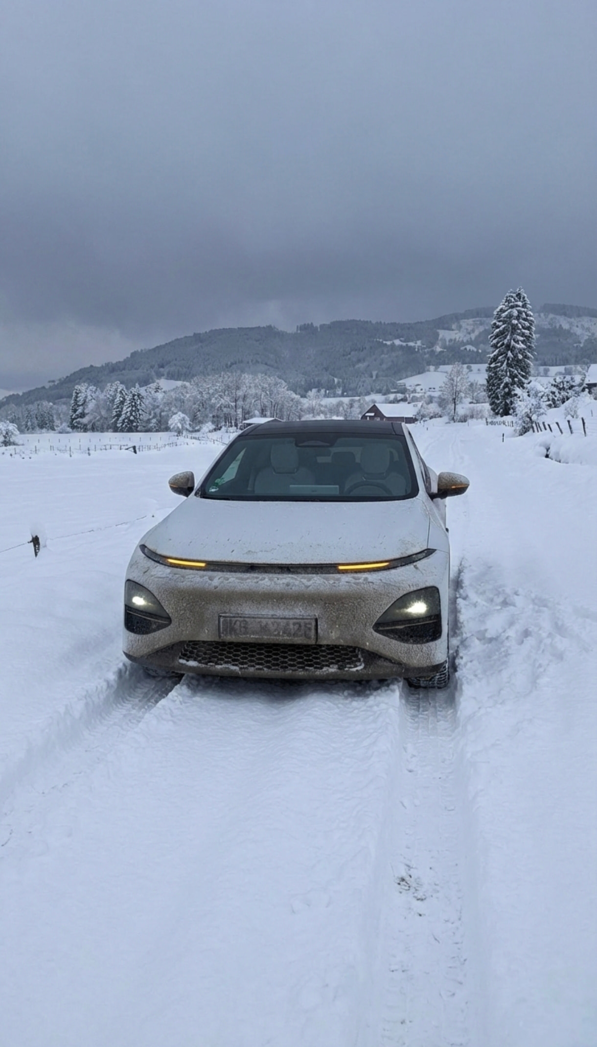 Schade dass es kein XPeng Werbevideo gibt, wo ein XPeng einen steilen schneebedeckten Weg hoch fährt….