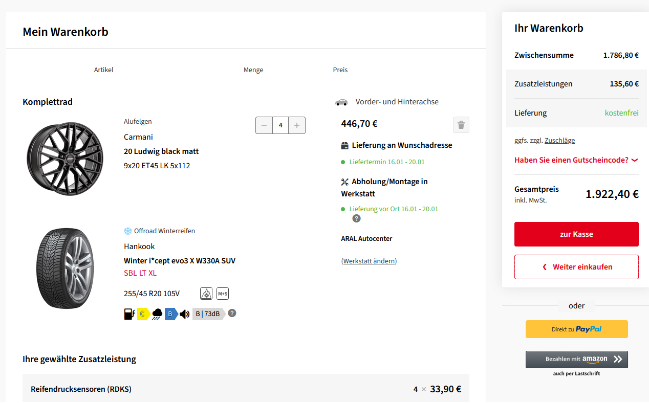 Genau 1800 hab ich für die 20” mit Hankook icept ion bezahlt.