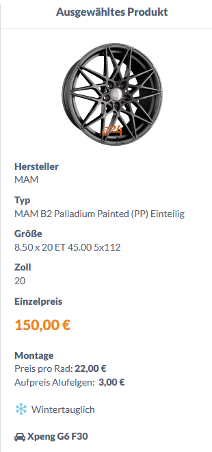 Link zu Felgenoutlet nur, weil da das Gewicht steht. Bei anderen Händlern gibt es die auch, und dann auch in 20 Zoll - die sind bei Felgenoutlet aktuell nicht auf Lager.