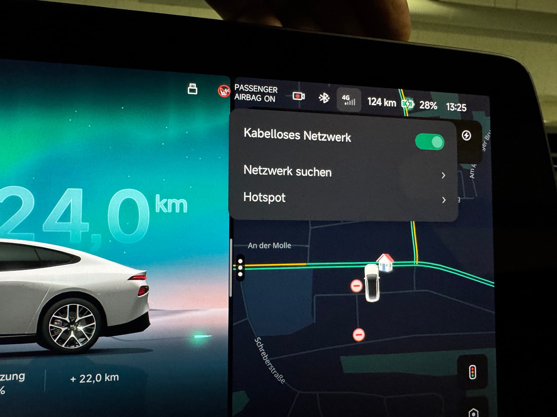 Xpeng haben keine WLAN-Option. Sie haben immer unlimitiertes Internet über eigene eSIM.