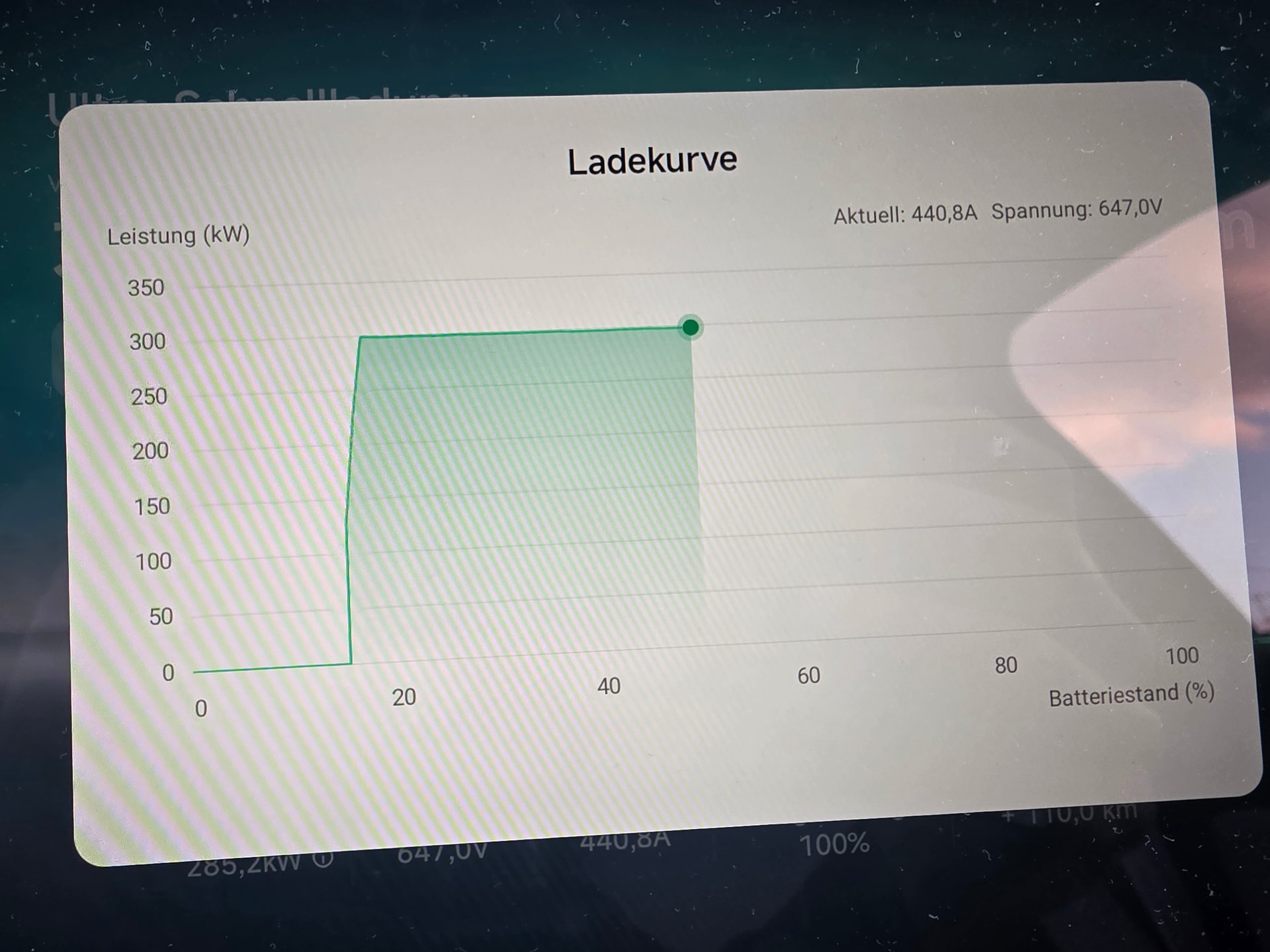 Dennoch profitiert man auch in Europa massiv von dieser Technik: Da das Auto eigentlich für viel mehr Leistung ausgelegt ist, „langweilt“ sich das Batterie-System bei 300 kW fast schon. Das resultiert in einer extrem flachen und hohen durchschnittlichen Ladeleistung über den gesamten Ladevorgang.