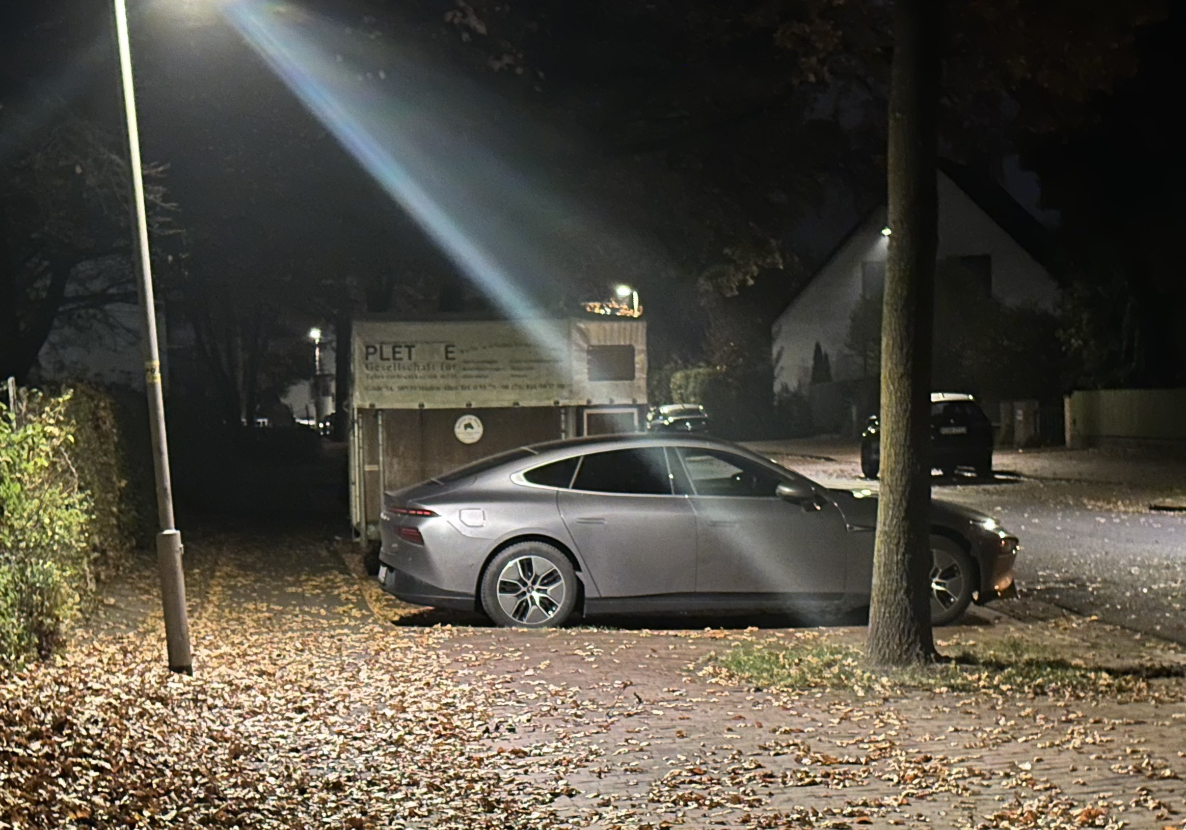 in Hannover ein schicker grauer P7 bei Nacht