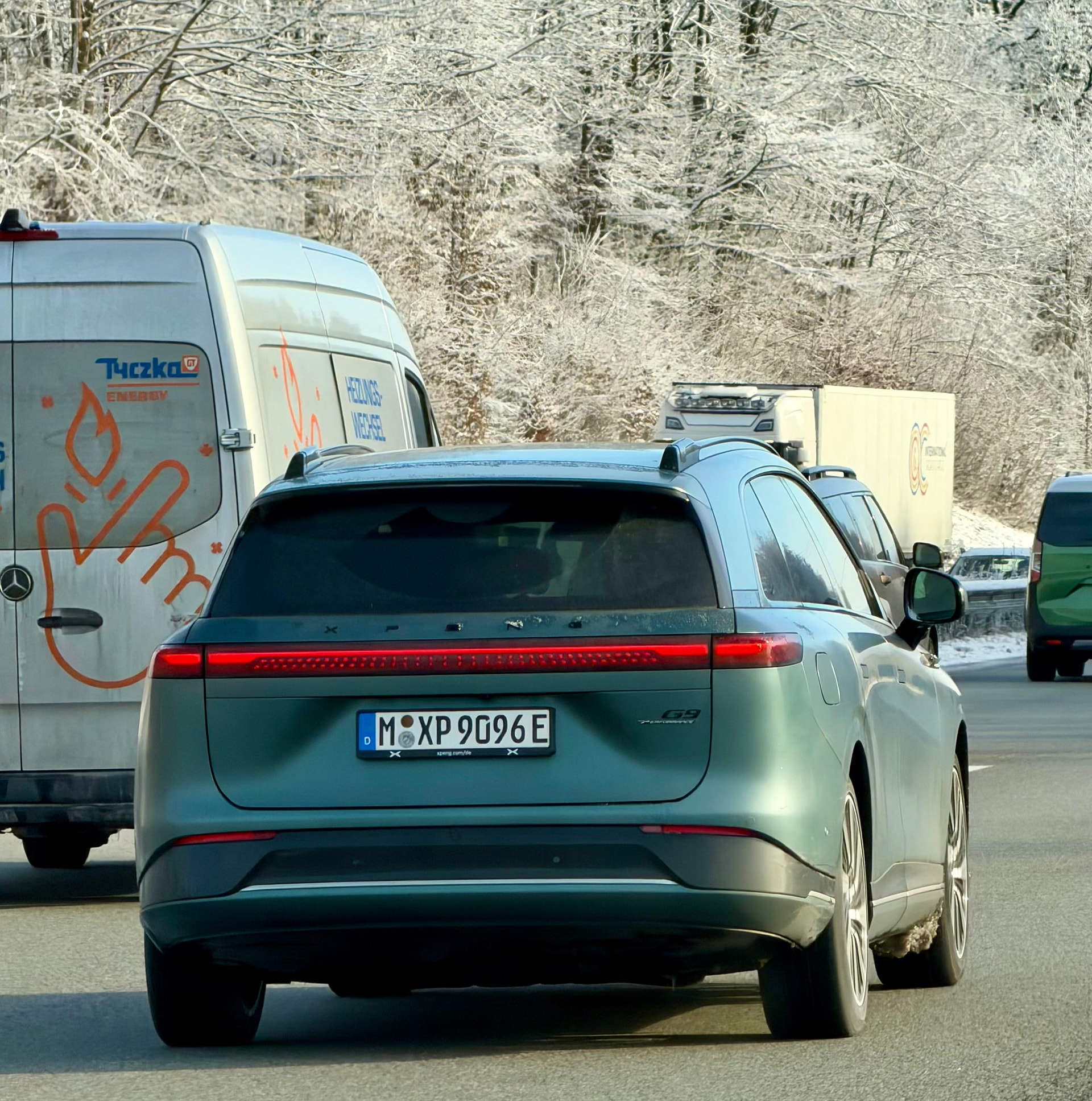 Heute 11:33 auf der A3 zwischen Siegburg und Montabaur, Fahrtrichtung Süden, G9P vom XPENG selbst, mit einem gestikulierenden Youtuber drin umgeben von Saugnapfkameras… ![]()