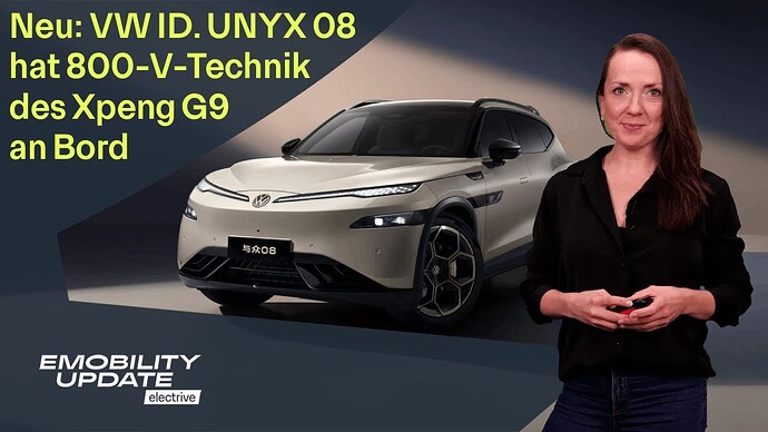 Zitat: „Das ist beim ID. UNYX 08 wohl anders: Denn als die VW-Xpeng-Partnerschaft 2023 verkündet wurde, war auch die Rede davon, dass der deutsche Autobauer die G9-Plattform von Xpeng für eigene China-Modelle nutzen werde. Und die CN EV Post legt nahe, dass es sich bei dem ID. UNYX 08 eben um den ersten VW auf der G9-Plattform handeln soll – bestätigt ist das aber nicht.“