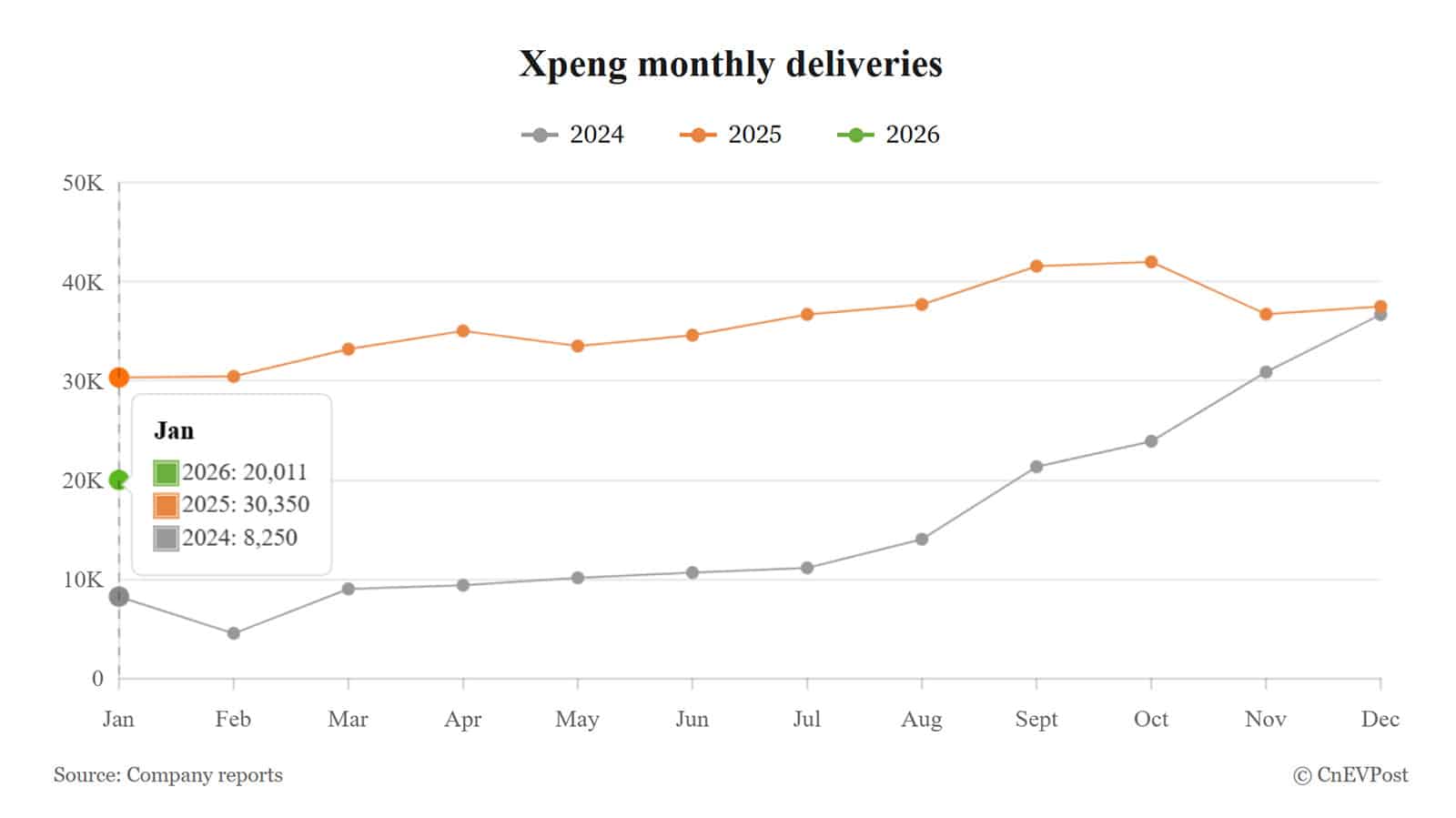 Im Januar 2026, XPENG wurden insgesamt 20.011 Fahrzeuge ausgeliefert. Es wird erwartet, dass diese Auslieferungen die Treibhausgasemissionen über den gesamten Lebenszyklus um mehr als 300.000 Tonnen reduzieren – das entspricht der Kohlenstoffaufnahme von 4,94 Millionen Baumsetzlingen über 10 Jahre