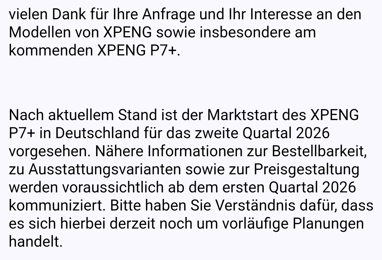 Der P7+ wird bereits auf der XPeng-Website von Belgien, Frankreich, Niederlanden, usw. beworben. Es bleibt zu hoffen, dass die Infos auch für Deutschland relevant sind.