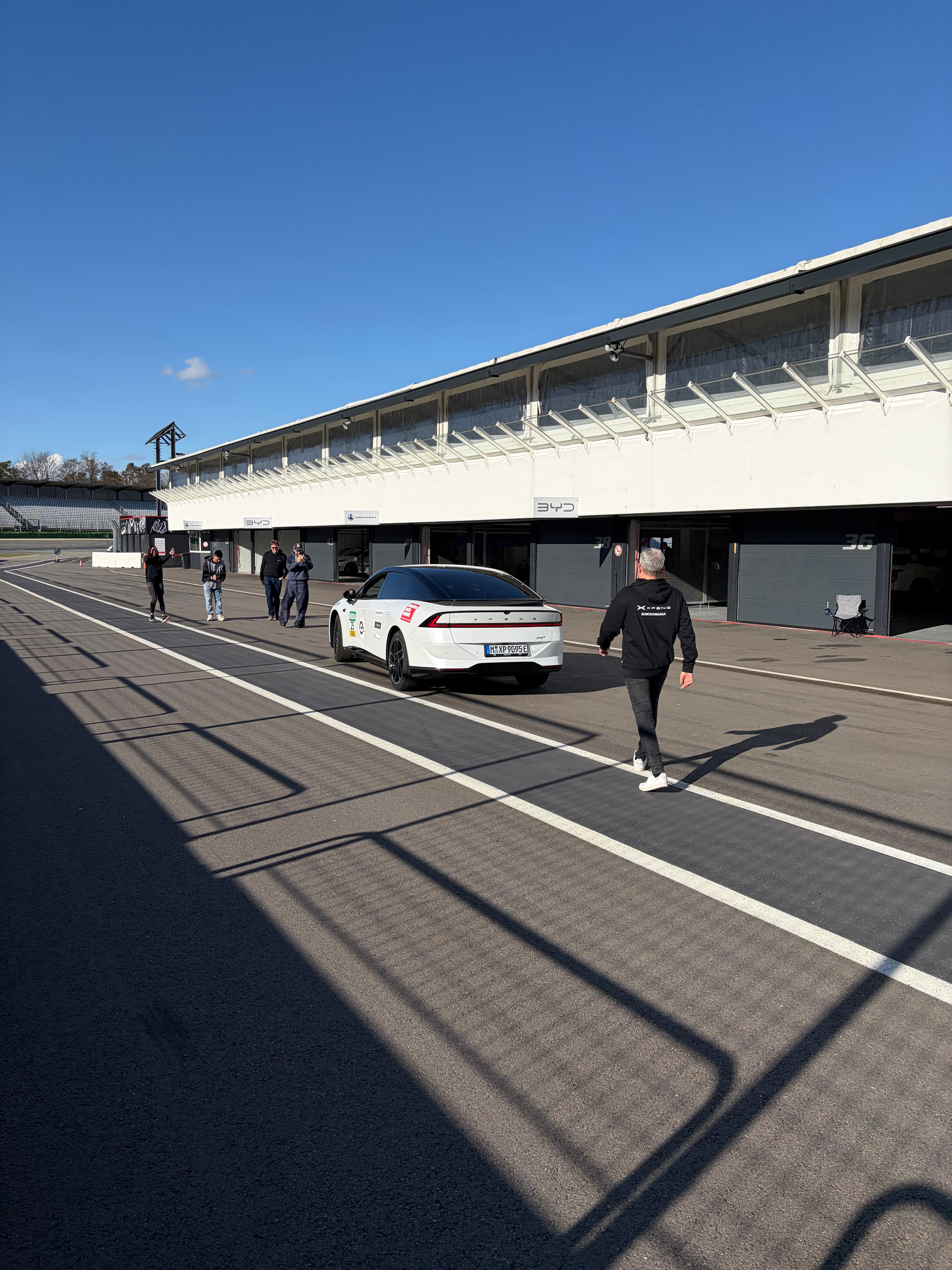 Hallo, ich war gestern auf dem Hockenheimring und habe den XPeng P7+ fahren gesehen. Nach Abschluss des Rennens um 15:00 Uhr konnte ich mich in den P7+ reinsetzen.