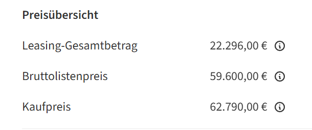 Zum Leasing selbst kann ich mich aber wenig äußern, da ich das Konzept grundsätzlich ablehne. Ich vermute, dass hier die „Verkaufszahlen“ mit niedrigen Leasingfaktoren angekurbelt werden sollen.