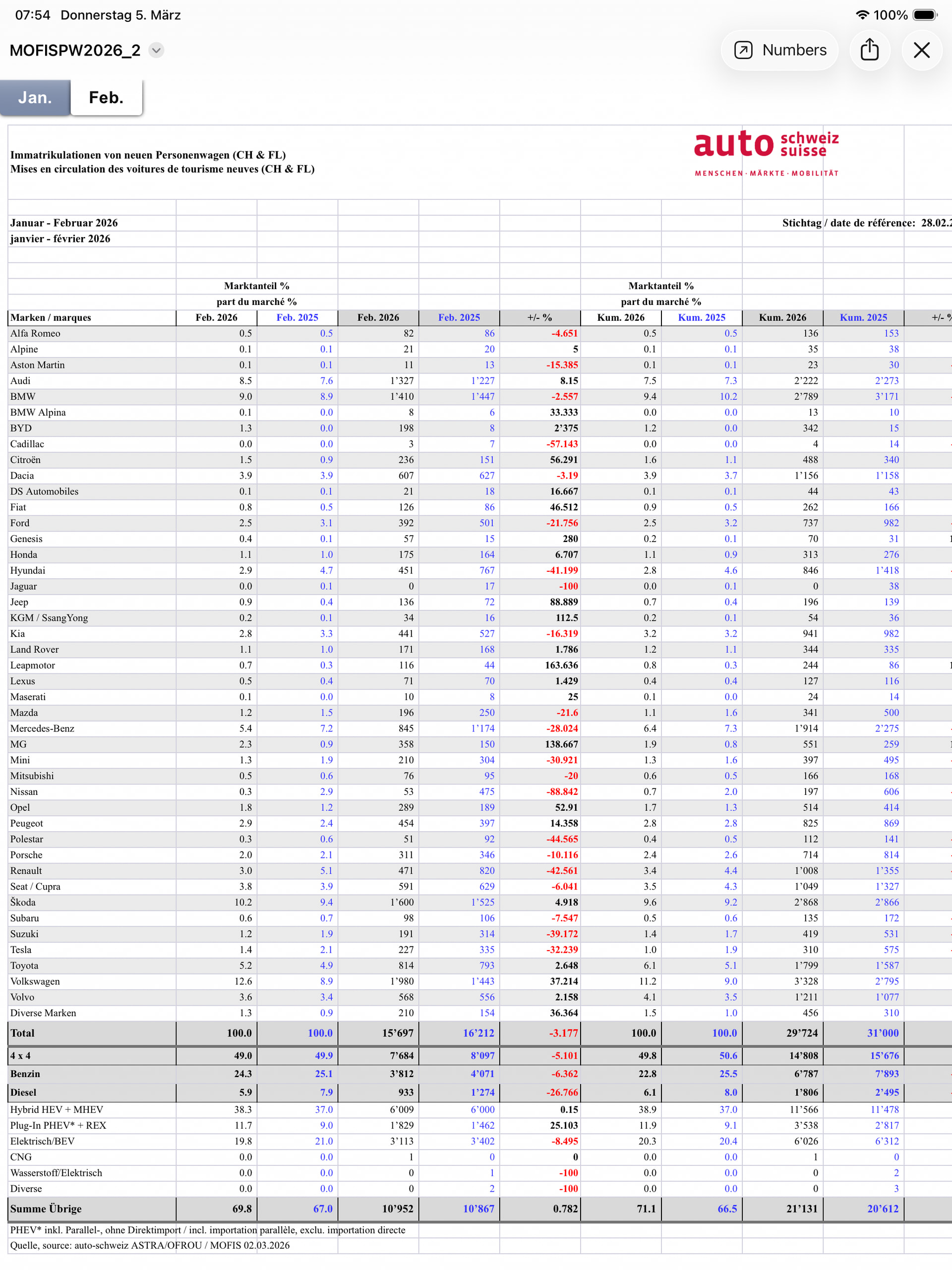 Leider sind die Zulassungen auf niedrigem Niveau rückläufig, ich hoffe, das ändert sich. Im Sinne meiner Aktien ![]()