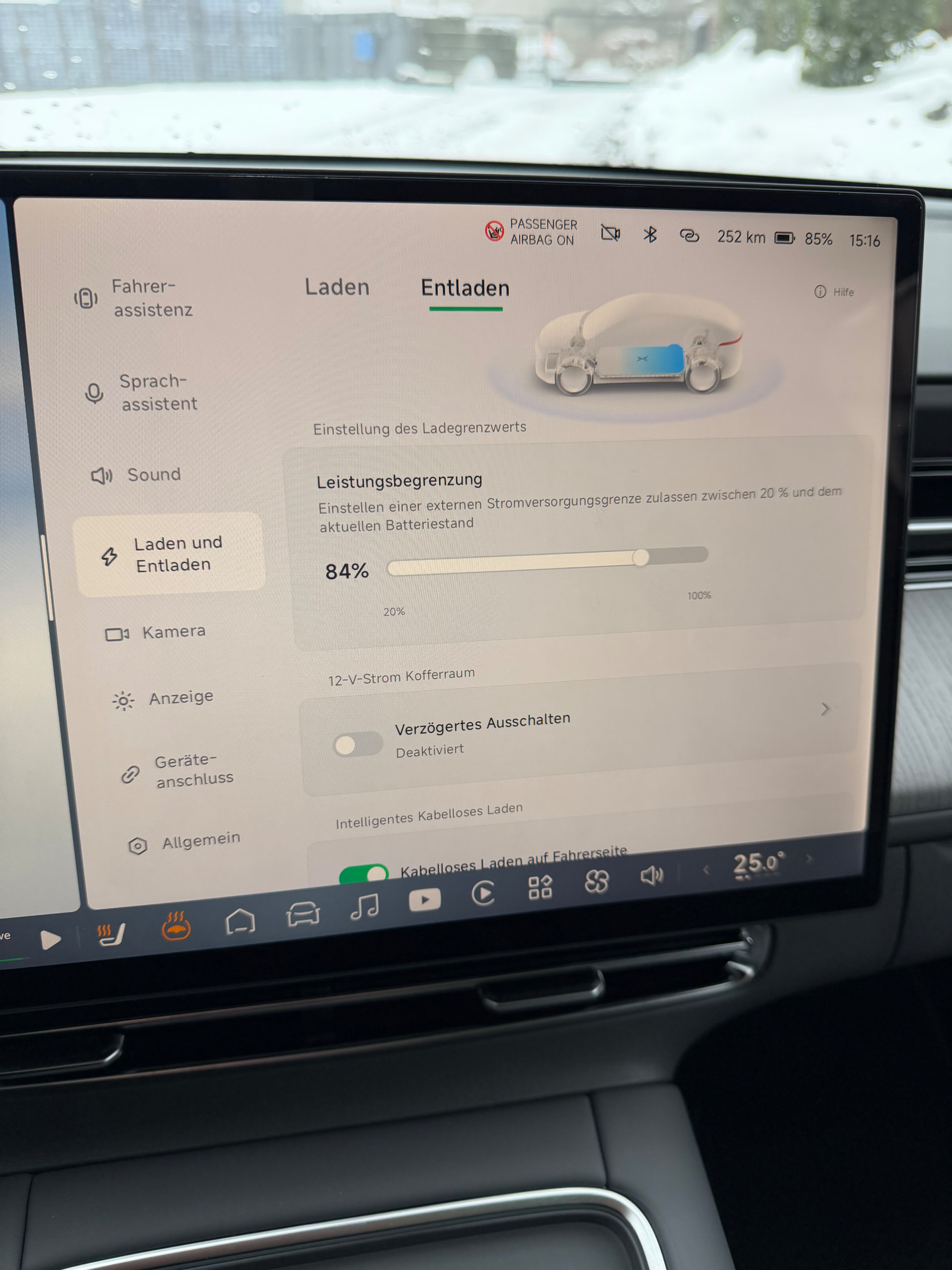 Im Entlade-Menü hast du den Grenzwert der V2L-Funktion auf 84% gestellt.