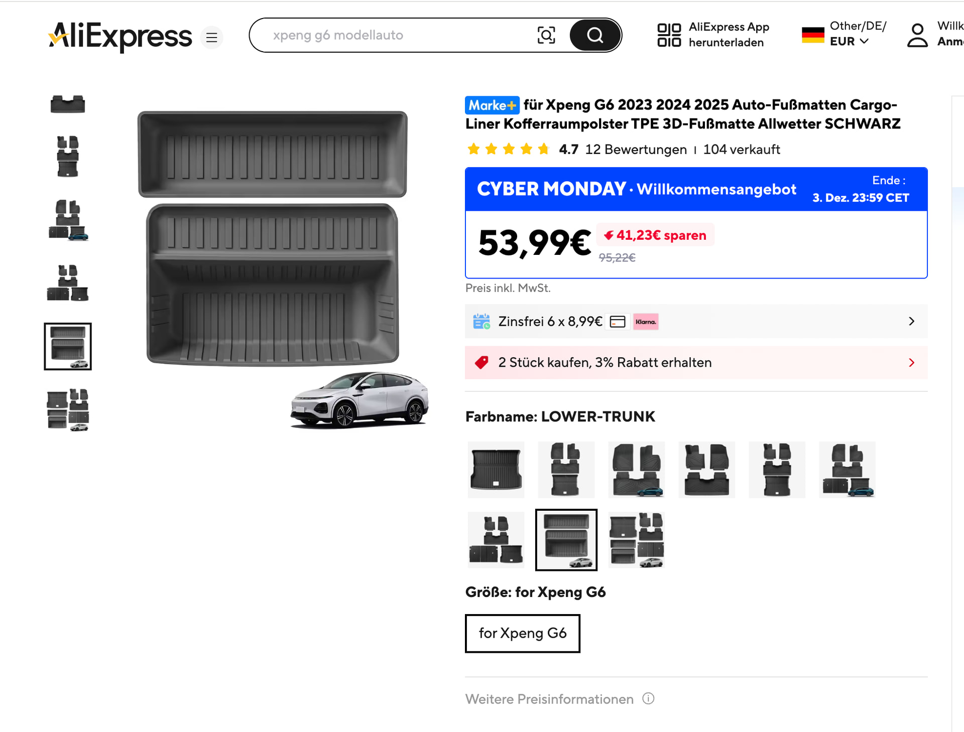 (ich habe mir nur die Gummimatte für oben drauf von Ali bestellt, und die Stoff Fußmatten auf Amazon)